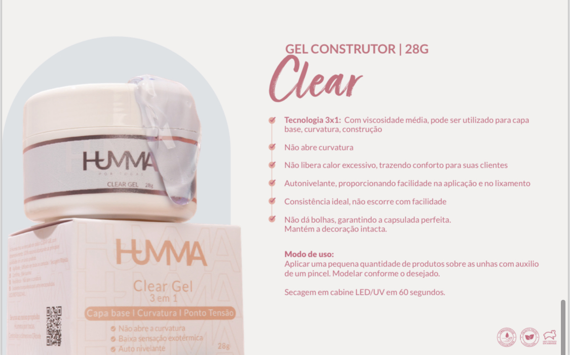 Excelente gel construtor com tecnologia 3X1. Com viscosidade média, é ideal para uso desde a capa base até a curvatura e ponto de tensão. Mantém a curvatura sem abrir. Não provoca calor excessivo nas unhas, proporcionando conforto durante a aplicação. Possui cor natural e versátil, que realça a beleza do alongamento. Autonivelante, facilita a aplicação e o lixamento. Modo de Uso: Aplicar com o auxílio de um pincel. Tempo de cura total de 60 segundos em cabine LED/UV.