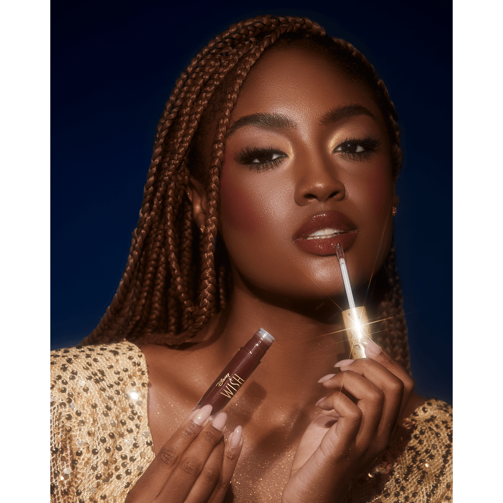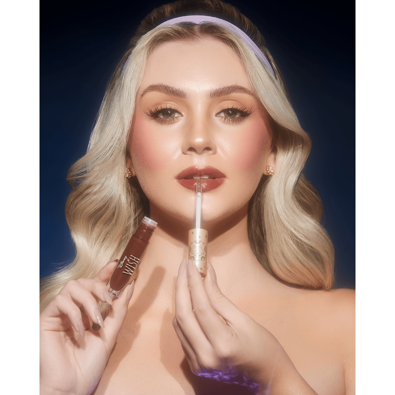 O Gloss labial Disney Wish possui cores inspiradas na animação Wish: O Poder dos Desejos. Sua fórmula exclusiva apresenta duas texturas: jelly mais consistente e sérum mais leve, ambas confortáveis e que aderem aos lábios sem escorrer. A pigmentação das cores desse produto são adaptáveis, podendo ser usado sozinho ou por cima de batons.