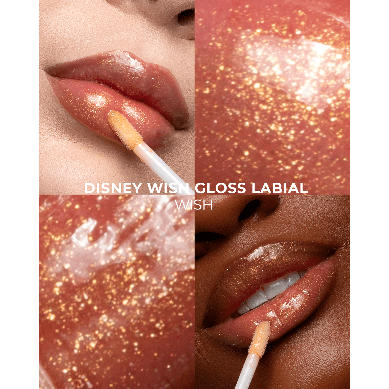 O Gloss labial Disney Wish possui cores inspiradas na animação Wish: O Poder dos Desejos. Sua fórmula exclusiva apresenta duas texturas: jelly mais consistente e sérum mais leve, ambas confortáveis e que aderem aos lábios sem escorrer. A pigmentação das cores desse produto são adaptáveis, podendo ser usado sozinho ou por cima de batons.