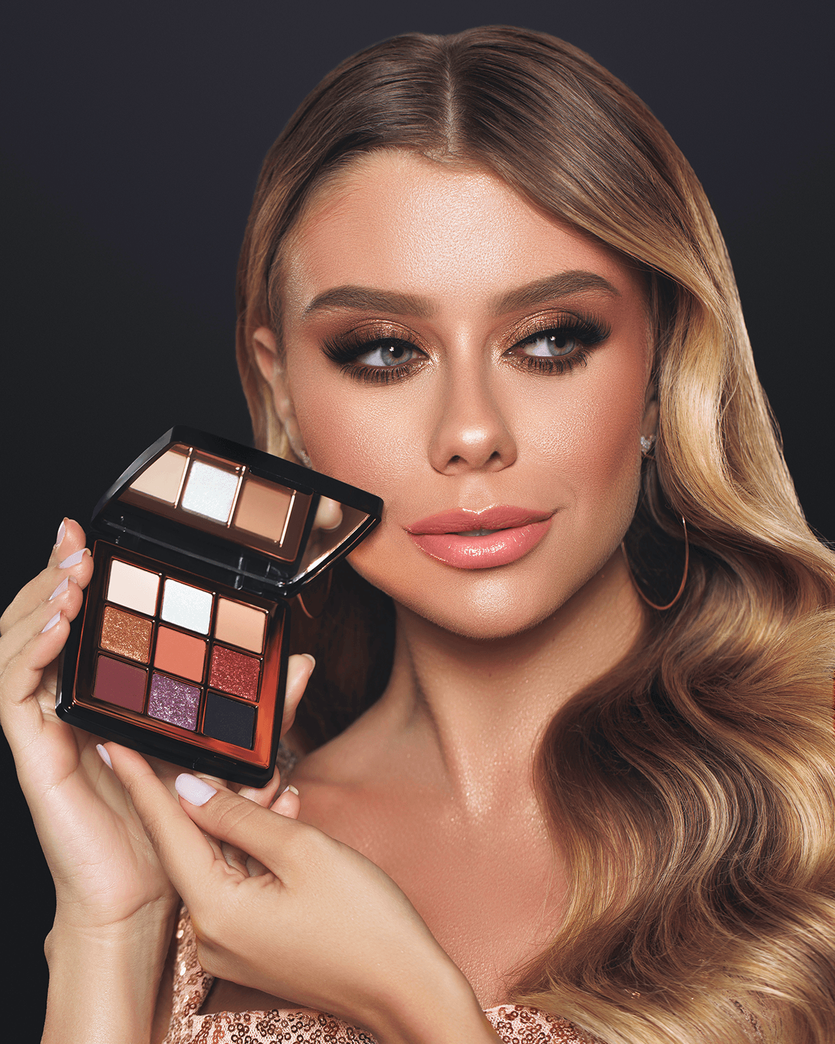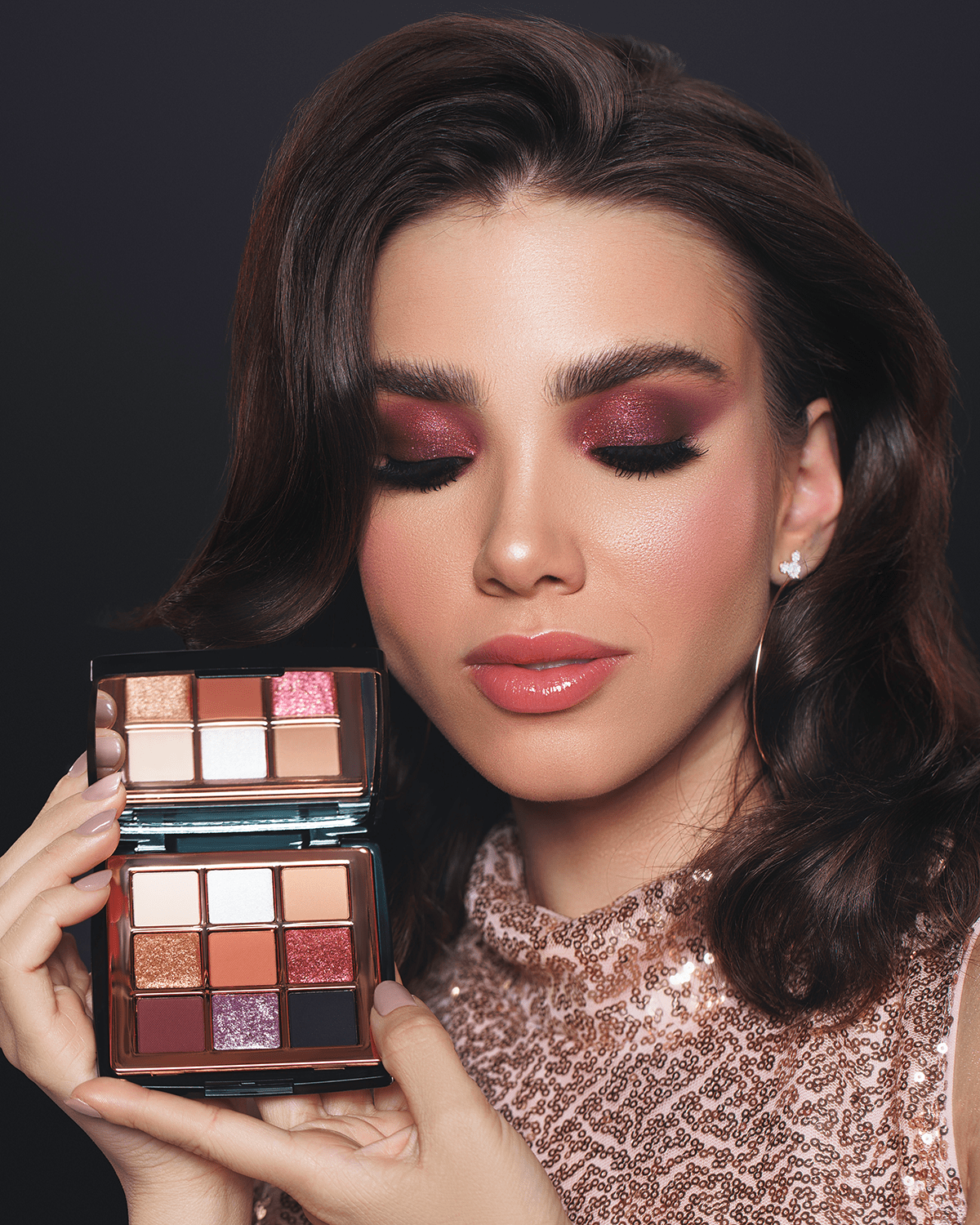 A paleta All Eyes On Minnie é uma paleta de sombras com embalagem luxuosa em preto e metalizado rose gold, também acompanha espelho. Possui fórmulas exclusivas e 9 cores divididas em diversos acabamentos como folheado brilhante, cintilante perolado, iridescente e matte aveludado.