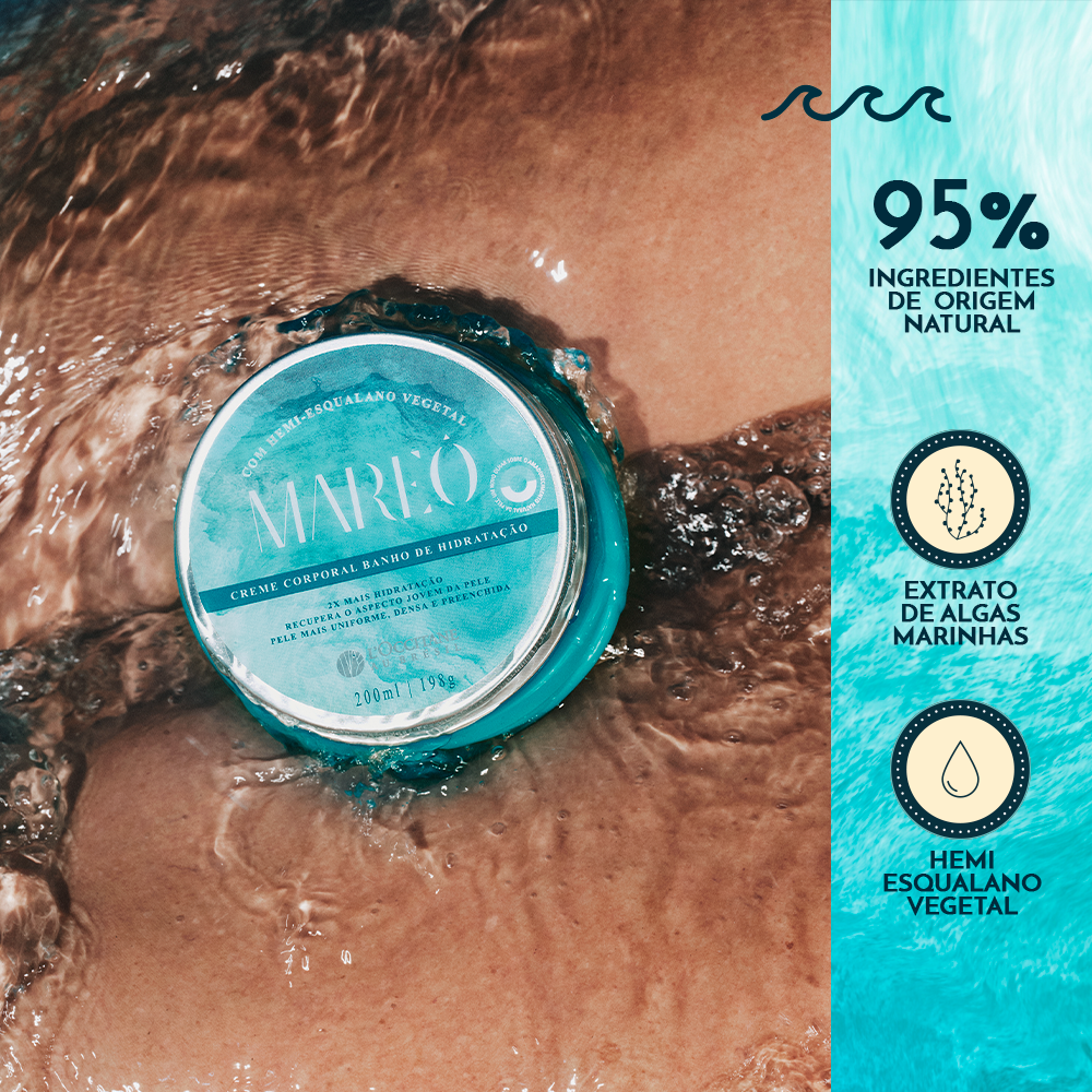 Inspirado no frescor de um banho de mar, este creme corporal que combina extrato de algas marinhas e hemi esqualano vegetal recupera o aspecto jovem, deixando a pele mais preenchida, densa e uniforme¹. Este produto é capaz de trazer 2x vezes mais hidratação² além de melhorar a elasticidade³ da pele. Com efeito calmante após exposição solar, ele proporciona sensação de frescor, homogeniza o tom¹ e ajuda a manter o bronzeado natural por mais tempo³. Pirâmide Olfativa: Saída: Limão, Capim-Limão, Alecrim. Corpo: Lavanda, Cardamomo, Maçã. Fundo: Sândalo, Âmbar, Musk. Fragrância desenvolvida com tecnologia Thalassogaia™, capaz de traduzir olfativamente a atmosfera dos oceanos, guiando a brisa do mar para dentro do produto. Essa tecnologia conduz mentalmente a uma viagem às costas marinhas, podendo contribuir com os benefícios holísticos de sensação de bem-estar, de se sentir bem e vitalizado como se estivesse fisicamente próximo ao mar.
