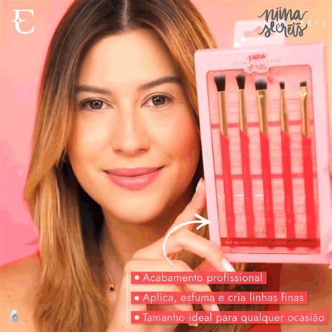ada pincel é composto por cerdas sintéticas de qualidade para criar qualquer tipo de olhar, desde o mais básico ao marcante. O kit inclui pincéis para esfumar (grande, médio e pequeno), pincel de aplicar e um pincel chanfrado, Contém: Eudora Niina Secrets Essenciais - Pincel de Esfumar Grande Eudora Niina Secrets Essenciais - Pincel de Esfumar Médio Eudora Niina Secrets Essenciais - Pincel de Esfumar Pequeno Eudora Niina Secrets Essenciais - Pincel de Aplicar Sombra Eudora Niina Secrets Essenciais - Pincel Chanfrado