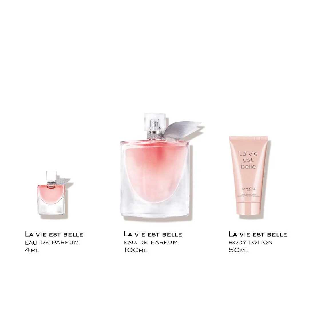 Este coffret encantador é um convite irresistível para celebrar a vida, a plenitude e felicidade. Este kit Lancôme contém: LA VIE EST BELLE EAU DE PARFUM 100ML La Vie Est Belle Eau de Parfum é uma fragrância com rastro atemporal e equilíbrio perfeito composta pelos materiais mais preciosos: combina a nobreza da Iris Pallida, a profundidade do Patchouli, baunilha viciante e um acorde gourmet único. BODY LOTION LA VIE EST BELLE 50ML Uma carícia perfumada para sua pele! Sua textura sedosa hidrata profundamente, deixando um toque aveludado. O aroma marcante da fragrância permanece na pele ao longo do dia, intensificando a sensação de bem-estar. É o hidratante corporal da linha La Vie Est Belle e incorpora a essência do perfume em uma loção hidratante única. MINIATURA LA VIE EST BELLE 4ML Perfeita para levar na bolsa e ter sempre à mão a magia de La Vie Est Belle. Uma dose extra de encanto para acompanhar você em todos os momentos. Presenteie quem você ama ou celebre a sua própria beleza com o Kit La Vie Est Belle.