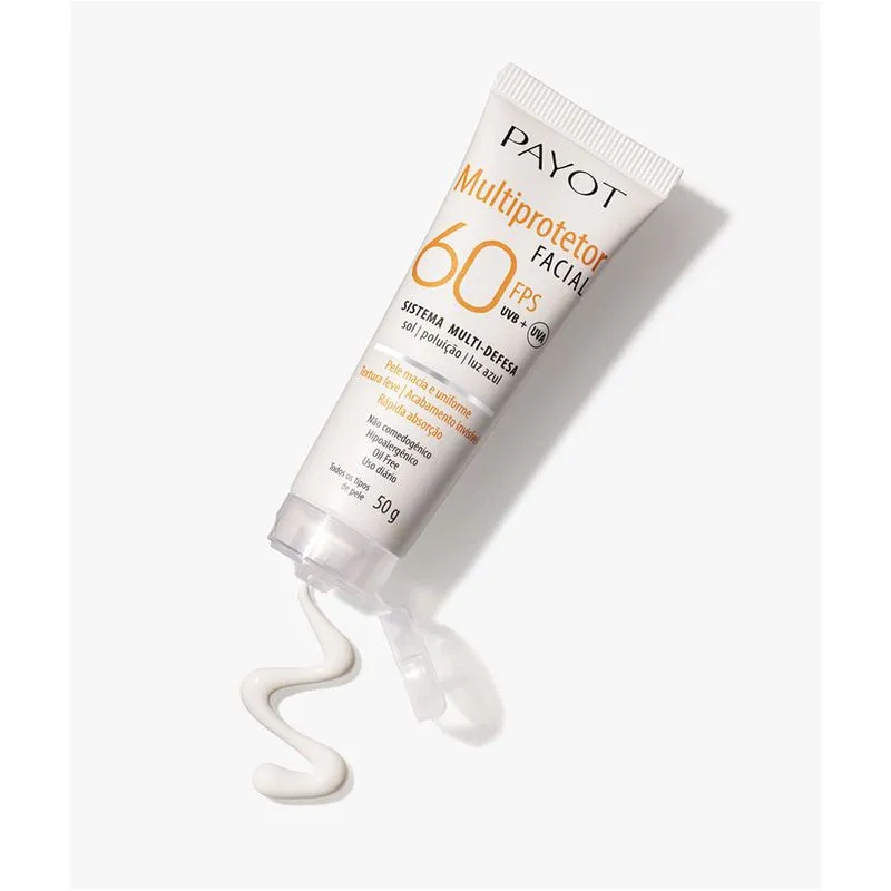 Multiprotetor Facial FPS 60 Payot é um produto perfeito para a defesa contra as agressões diárias. Possui uma combinação de filtros e ativos de alta eficácia que hidrata e protege o rosto dos efeitos nocivos do sol, poluição e luz azul. Com ação antioxidante, previne o envelhecimento precoce. Ajuda na prevenção de marcas, rugas e linhas de expressão. Tom de pele mais uniforme. Acabamento invisível, não muda a sua cor. Espalha facilmente. Textura leve. Não deixa a pele oleosa. Produto livre de álcool, parabenos, corantes e fragrância. Não testado em animais e vegano