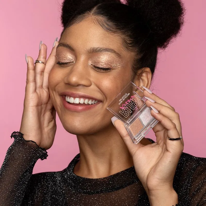 Uma coleção inspirada na autenticidade e no brilho! Com uma Duo Palette com glitter e pigmentos intensos de alta duração. Shine Collection te convida a se jogar no glitter e a celebrar sua beleza e individualidade. A nossa queridinha Duo Palette possui 1 sombra cintilante super aveludada e intensa, sem fundo de cor e 1 glitter com com brilhos 3D prensado com cola, o que garante alta fixação e durabilidade. vegano e livre de crueldade animal.