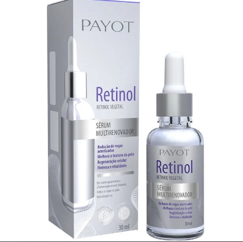 O Serum Retinol Multirenovador Payot, tem fórmula multifuncional com associação exclusiva de ativos que ajudam na regeneração celular da face e área dos olhos. Auxilia na redução de rugas e linhas de expressão acentuadas. Estimula a produção natural do colágeno, melhora a firmeza, reduz poros dilatados, proporcionando ação completa de rejuvenescimento. Confere melhora da textura e aspecto geral da pele. Utilizamos um ativo de origem vegetal (Phyto-Retinol), que não possui os efeitos adversos do retinol tradicional.