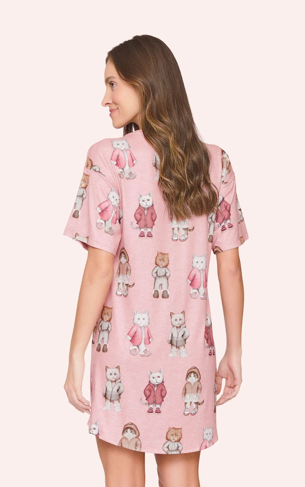 Esse camisetão em sublime touch tem modelagem clássica e recebe ainda um bolso contrastante com recorte em pêlo premium flock para você se sentir mais próxima dos cats.