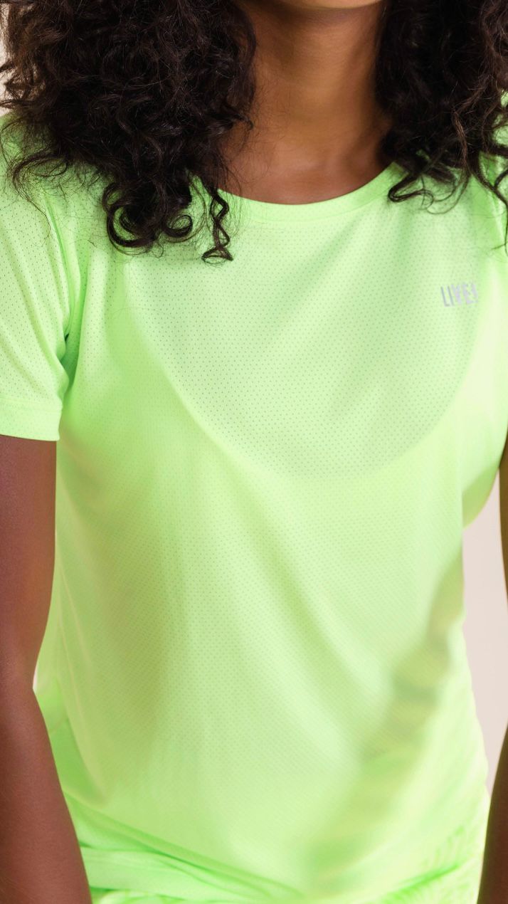 Camiseta com modelagem comfy, levemente solta. Tecido em superfície microperfurada.