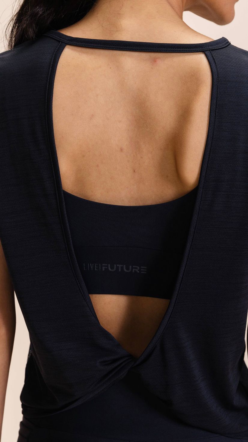 Camiseta LIVE! Future com torção. LIVE! Future é uma coleção de Eco Design, com tecidos cuidadosamente escolhidos que garantem um proceso produtivo com menos emissão de Co2.