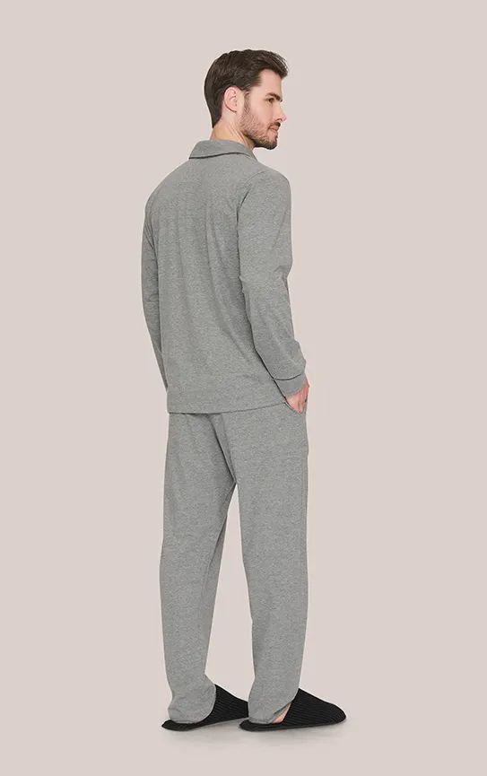 Classico e atemporal, o Pijama aberto masculino em malha soft touch com toque aveludado tem abertura frontal, bolso e é delineado por filetes para um fino acabamento.