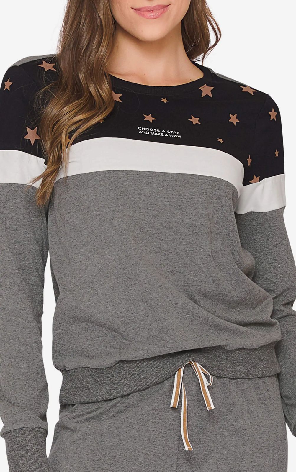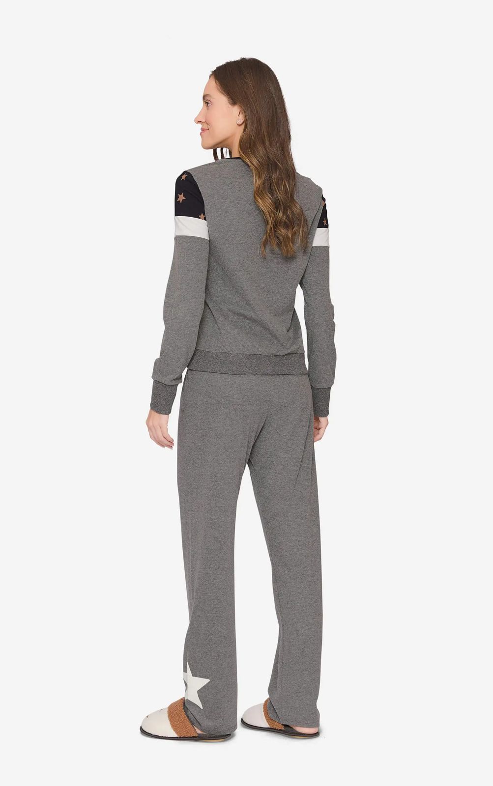 Aqui sempre tem estrelas, escolha uma e faça um pedido. Um coordenado inteiro com as estrelas mais brilhantes numa daquelas noites escuras bem iluminadas por elas. Nesse pijama comfort todo em malha soft touch de algodão com toque aveludado do acabamento peletizado, recebe estampa localizada na calça e no recorte superior da blusa e os detalhes contrastantes harmonizam a peça. Os acabamentos são em canelado e o cadarço é diferenciado.