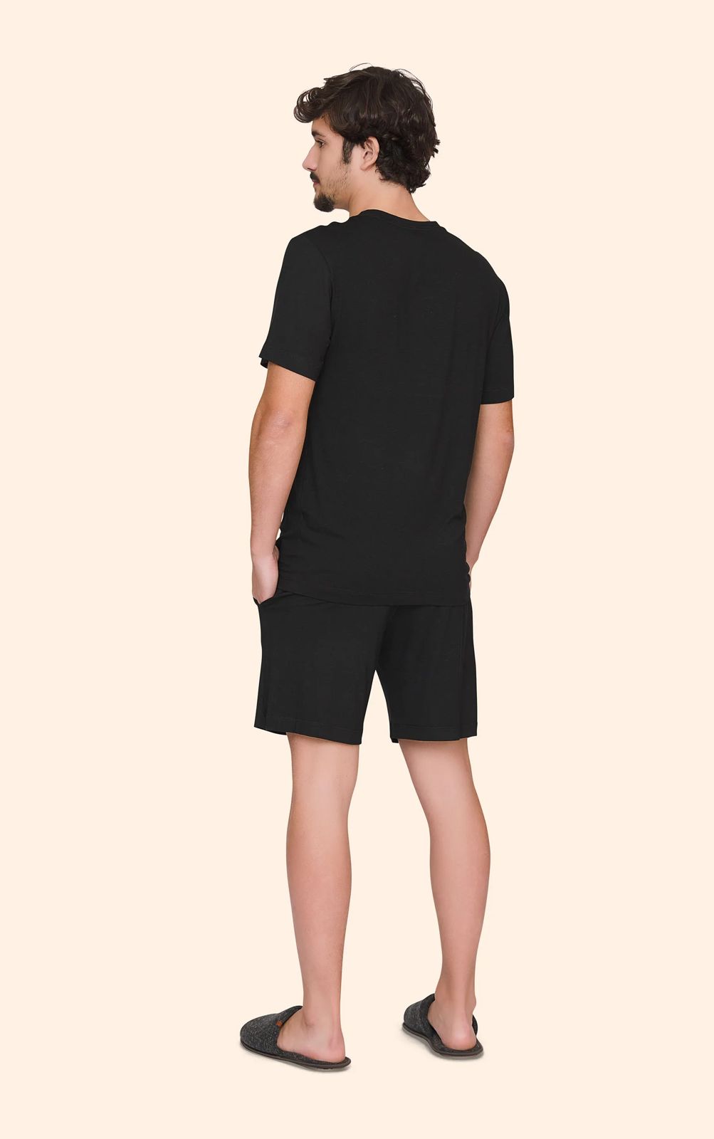 Pijama Curto Masculino, com camiseta e bermuda em Viscolycra, dando destaque na estampa contrastante a peça. A bermuda possui bolso lateral, elástico na cintura e cordão para ajuste.