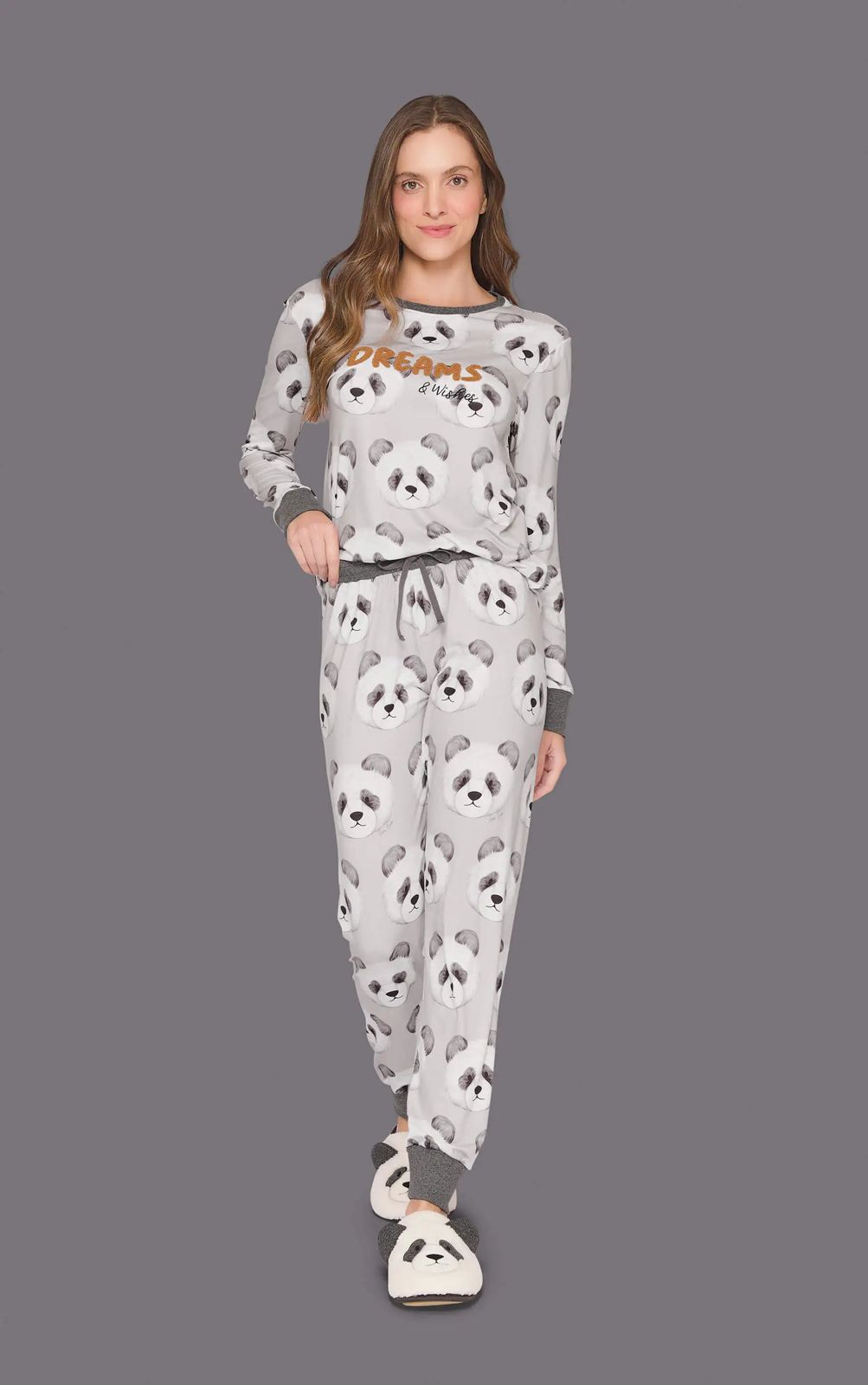 O mix de estampas é bem completo, entre nuvens, listras e panda na versão maxi super moderno com os mais variados produtos inclusive para toda a família. Esse pijama Jogger em sublime touch tem modelagem aconchegante, acabamento em canelado mescla e recebe um bordado com aplique atoalhado em cor contrastante.