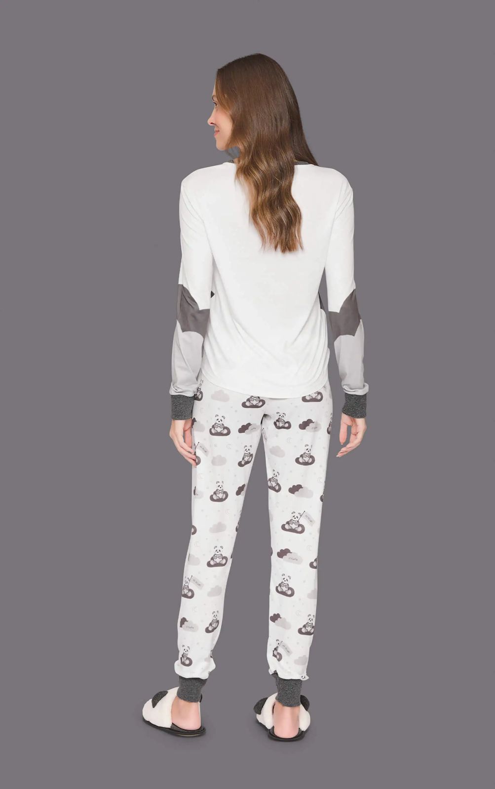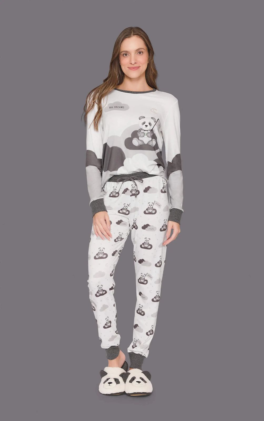 O mix de estampas é bem completo, entre nuvens, listras e panda na versão maxi super moderno com os mais variados produtos inclusive para toda a família. Em sublime touch tecido confortável, esse pijama jogger recebe arte localizada na blusa frente e mangas compondo com a calça e os acabamentos são em canelado mescla.