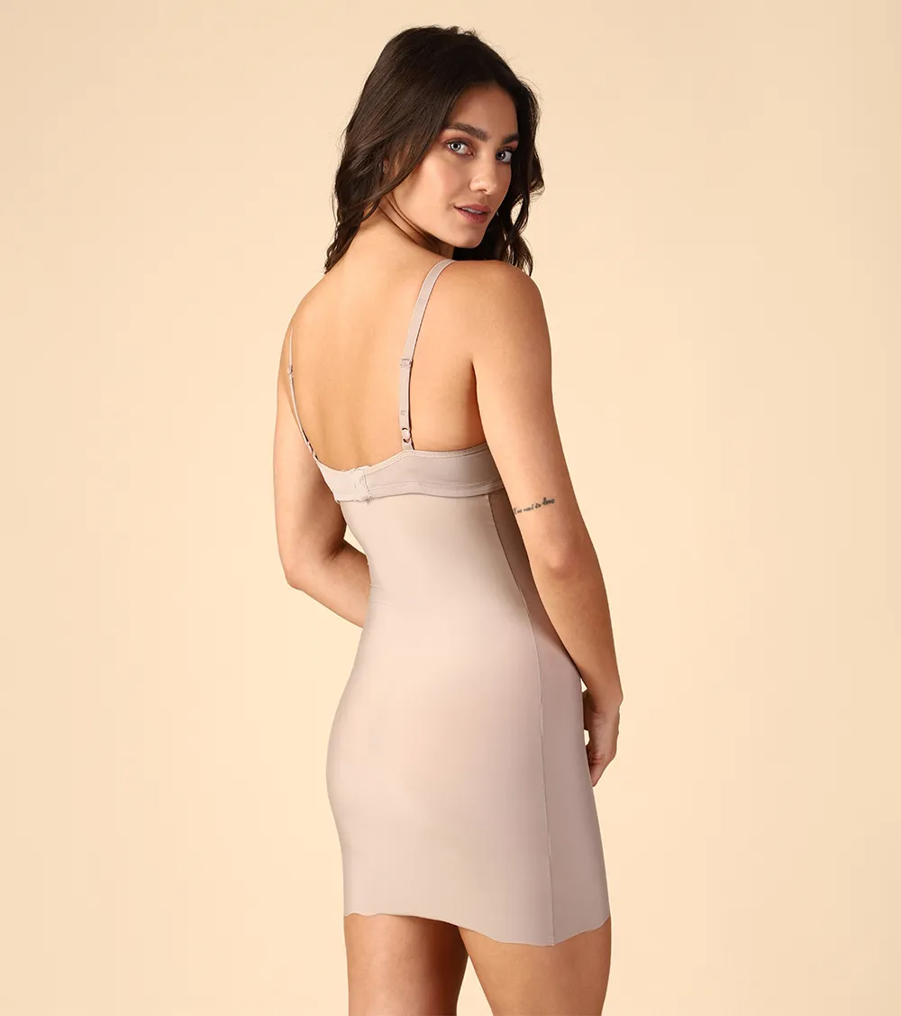 • Semi Vestido da linha Shapewear Invisible Estética • Tecido em supermicrofibra exclusiva Estética, indesmalhável, super fina, leve compacta e respirável (corte à laser) • Maior ajuste no abdome e estômago • Disfarça flacidez nas costas e celulite no bumbum • Alinha a cintura • Desaparece totalmente sob a roupa • Adere perfeitamente ao corpo sem enrolar • Cós seguro com silicone e acoplador de sutiã • Versatilidade de uso com vários decotes e diferentes sutiãs • Use com: saias, vestidos e blusas justas