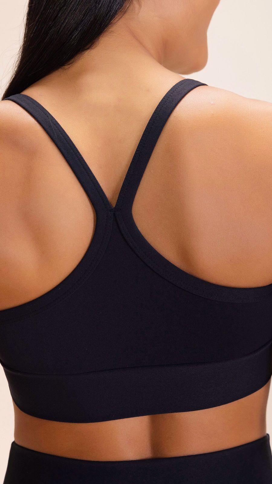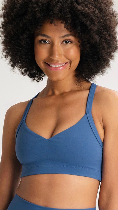Top de médio impacto com alças finas e decote V e bojo removível.