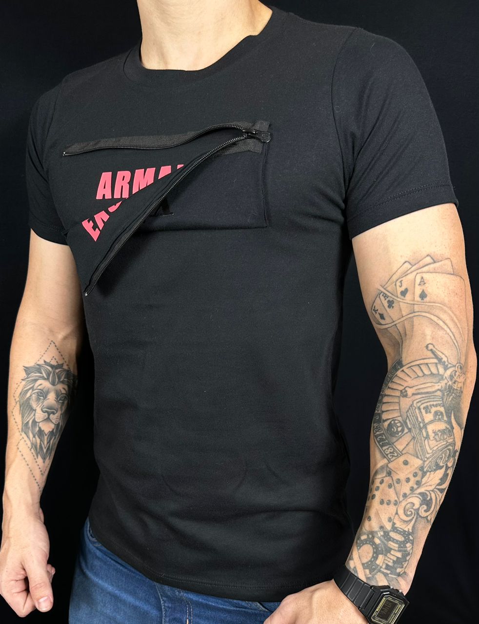 Camiseta Peruana Armani Preta Com Zíper