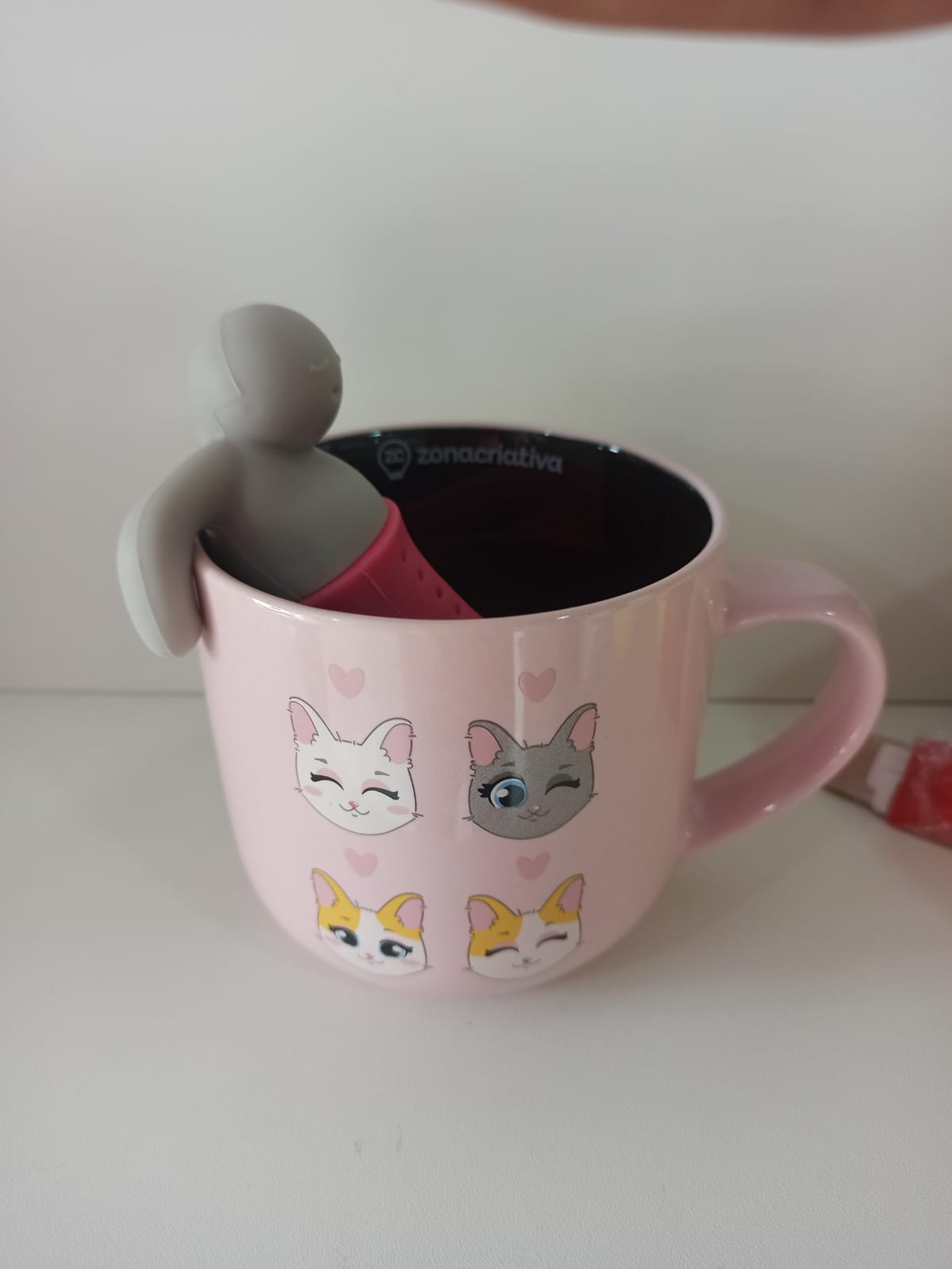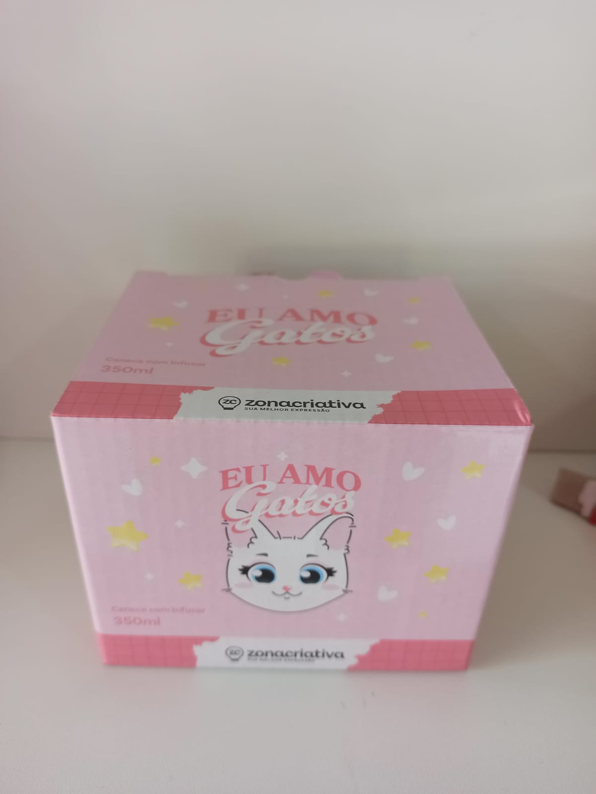 A Caneca com Infusor para Chá I Love Cats é um verdadeiro mimo! Produzida em cerâmica de qualidade, ela tem um design delicado, as CatLovers e as mamães de pet de plantão vão amar! A parte externa da caneca apresenta um lindo tom de rosa claro, com duas estampas: de um lado, há gatinhos de várias cores enfileirados, do outro, há somente um bichano e dizeres escritos em linda caligrafia: “I love cat and tea”. Uma gracinha, né?! Além disso, o produto vem com um infusos de chá divertido e mega fofo. Capacidade 350ml