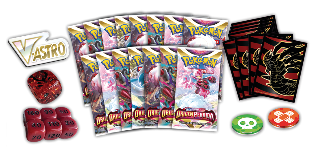 A coleção treinador avançado de espada e escudo 11- origem perdidas do pokémon estampas ilustradas contém: * 15 pacotes de booster de espada e escudo-origem perdida do pokemon estampas ilustradas! * 65 capas para cartas de giratina! * 6 dados para usar como contadores de dano! * 1 dado para jogada de moeda válido para competicões! * 2 marcadores de condições de acrilico! * 1 marcador v-astro de acrílico! * 1 caixa de colecionador para guardar tudo! * 1 carta codificada para o pokémon estampas ilustradas live.