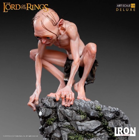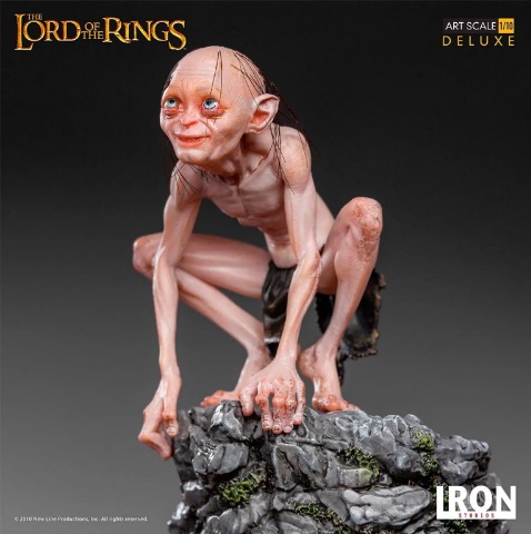 A Iron Studios apresenta mais uma "Preciosa" figura de sua linha "Art Scale 1/10 - Lord of the Rings", o simpático e cruel Sméagol, mais conhecido como Gollum, em uma edição "Deluxe", que inclui duas opções de pose. Produzido com base em referências originais do filme, em edição limitada, fabricado em polystone com pintura manual. Gollum foi introduzido no romance infantil O Hobbit de 1937, e se tornou um importante personagem na sequência O Senhor dos Anéis. Sméagol era um Hobbit Cascalvas que foi corrompido pelo "Um Anel" e, acabou cometendo um assasinato para obter-lo. Passou a ser chamado de Gollum por passar a fazer "barulhos horríveis em sua garganta ao engolir". Após fazer várias maldades, foi expulso de sua terra natal por sua avó, e vagou até as Montanhas Sombrias vivendo lá por séculos. Depois de 500 anos, o anel consumiu deformando sua mente e corpo, apenas uma uma parte de sua antiga personalidade sobreviveu. Depois que o anel se perdeu, ele foi atrás dele para recuperá-lo, mas no final acaba se tornando um instrumento útil para sua destruição.