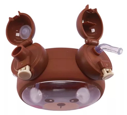 Tamanho: Aprox. Polegada 16x14,5 cm/6,3*5,7 Capacidade: 750ml Características: Tampa aberta de um botão, bocal do silicone, correia ajustável, forma bonito do urso Lista do pacote 1 garrafa d'água do urso 1 correia