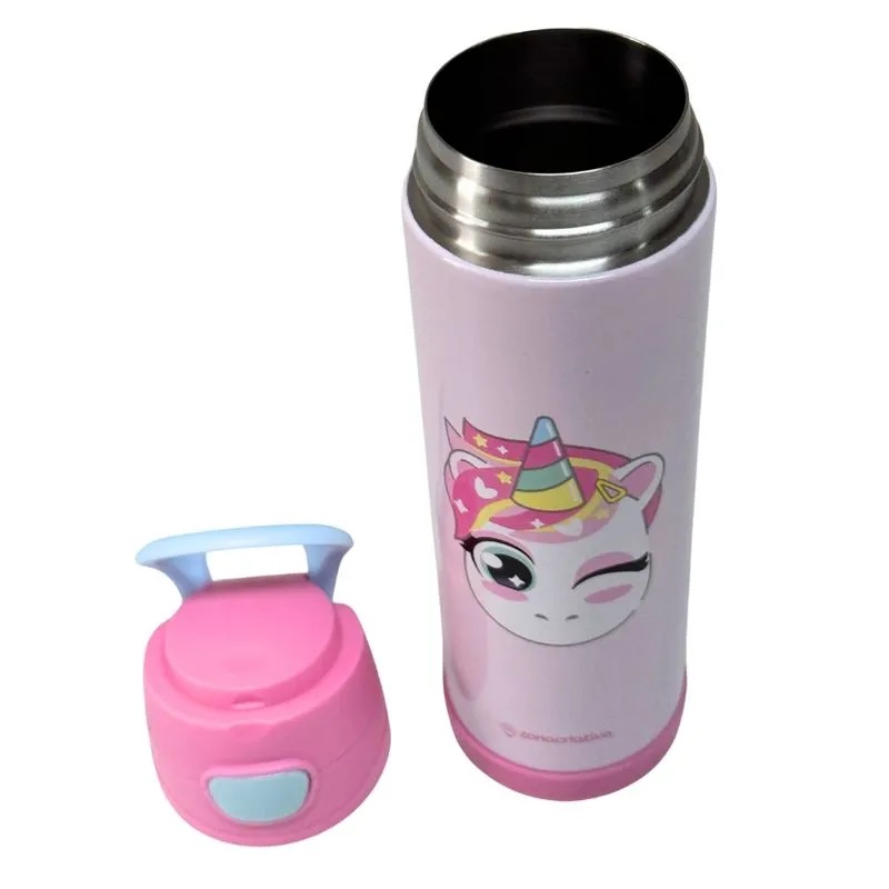 Feita em aço inox com parede dupla, ajuda a manter a temperatura da sua bebida por até 6h! Depois de um dia cheio de aventuras você não consegue se hidratar? A gente te ajuda! Com 500ml de capacidade e feita em aço inoxidável, essa garrafa ajuda a manter a temperatura da sua bebida até nos dias mais quentes! Não importa qual é a aventura, essa garrafa te acompanha em todos os momentos! A garrafa é importada, feita em aço inoxidável, possui detalhes incríveis que vão fazer você se apaixonar! Se você busca uma garrafa que te acompanhe na faculdade, trabalho ou escola, você encontrou a companhia perfeita! Com 500ml de capacidade para te hidratar o dia inteiro, com uma tampa de click que evita vazamentos, caso você precise levar na bolsa ou mochila! Feita em aço inox com parede dupla, ajuda a manter a temperatura da sua bebida por até 6h. Possui uma estampa delicada e linda de unicórnio, além de contar com uma cartela de adesivos para você personalizar sua garrafa como quiser e uma alça para carregá-la mais facilmente! Não importa onde é a sua aventura, essa garrafa te acompanha em todos os lugares! Especificações: Marca: Zona Criativa Modelo: UNICÓRNIO Altura: 25cm| Largura: 8 cm| Comprimento: 8 cm Capacidade: 500ml Material: Aço inoxidável Cor Predominante: Rosa Cuidados e recomendações de uso: Não preencha com líquidos até a superfície, deixe pelo menos 1,5cm de espaço para poder fechar a garrafa. Choques ou quedas podem trincar ou quebrar o produto. Não é a prova de pequenos vazamentos, carregue o produto na posição vertical. Lavar com água, bucha macia e produto neutro. Não recomendado colocar no freezer. Não vai á lava-louças, nem ao micro-ondas. Não utilizar produtos químicos e abrasivos. *PRODUTO OFICIAL