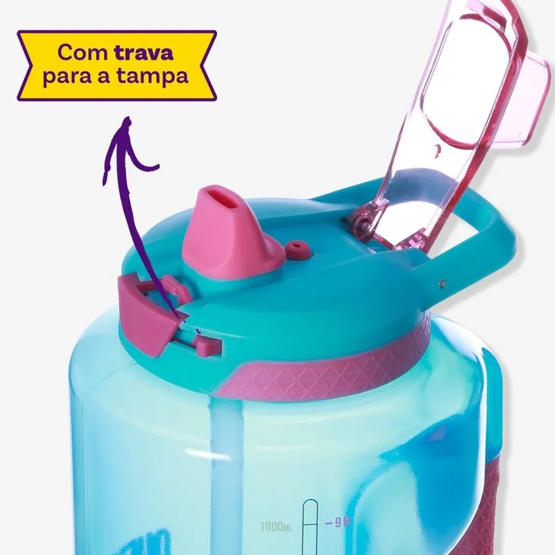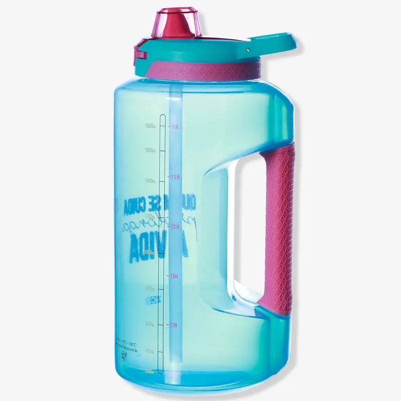 Precisando daquela mãozinha na hora de dar um presente bacana para a sua amiga? A gente te ajuda! Com 1,8L de capacidade, essa garrafa tem tudo o que você precisa para que a sua BFF mantenha uma boa relação com a hidratação! Com cronograma para auxiliá-la a controlar os horários, é a companhia ideal para o seu dia a dia! Não importa o rolê, essa garrafa te hidrata em todos os lugares! O produto é importado, feito em plástico livre de BPA, possui detalhes incríveis que vão fazer você e seu pai se apaixonarem! Se nunca achou uma garrafa que aguantasse a sua rotina, esse produto é para você! Com 1,8L, com tampa flip e trava a prova de vazamentos é a companhia ideal para a sua mochila! E se você tem dificuldades em beber a quantidade certa de água, pode relaxar, essa garrafa possui um cronograma para te auxiliar com isso! Com uma alça revestida de silicone, tem uma pegada macia e confortável é perfeita para te acompanhar na academia, faculdade, ou qualquer lugar! Não importa a sua aventura, essa garrafa te acompanha em todos os lugares! Especificações: Altura: 27cm| Largura: 12cm| Comprimento: 12cm| Capacidade: 1,8L| BPA: Free Cuidados e recomendações de uso: Não colocar o produto na geladeira ou congelador. Choques ou quedas podem trincar ou quebrar o produto. Evite qualquer aquecimento direto ou pasteurização. Não vai á lava-louças e micro-ondas. Lavar com água, esponja macia e sabão neutro. Não utilizar produtos químicos e abrasivos.