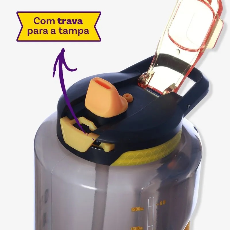 Precisando daquela mãozinha na hora de dar um presente bacana para o seu velho? A gente te ajuda! Com 1,8L de capacidade, essa garrafa tem tudo o que você precisa para que o seu pai mantenha uma boa relação com a hidratação! Com cronograma para auxiliá-lo a controlar os horários, é a companhia ideal para o seu dia a dia! Não importa o rolê, essa garrafa te hidrata em todos os lugares! O produto é importado, feito em plástico livre de BPA, possui detalhes incríveis que vão fazer você e seu pai se apaixonarem! Se nunca achou uma garrafa que aguantasse a sua rotina, esse produto é para você! Com 1,8L, com tampa flip e trava a prova de vazamentos é a companhia ideal para a sua mochila! E se você tem dificuldades em beber a quantidade certa de água, pode relaxar, essa garrafa possui um cronograma para te auxiliar com isso! Com uma alça revestida de silicone, tem uma pegada macia e confortável é perfeita para te acompanhar na academia, faculdade, ou qualquer lugar! Não importa a sua aventura, essa garrafa te acompanha em todos os lugares! Especificações: Altura: 27cm| Largura: 12cm| Comprimento: 12cm| Capacidade: 1,8L| BPA: Free Cuidados e recomendações de uso: Não colocar o produto na geladeira ou congelador. Choques ou quedas podem trincar ou quebrar o produto. Evite qualquer aquecimento direto ou pasteurização. Não vai á lava-louças e micro-ondas. Lavar com água, esponja macia e sabão neutro. Não utilizar produtos químicos e abrasivos.