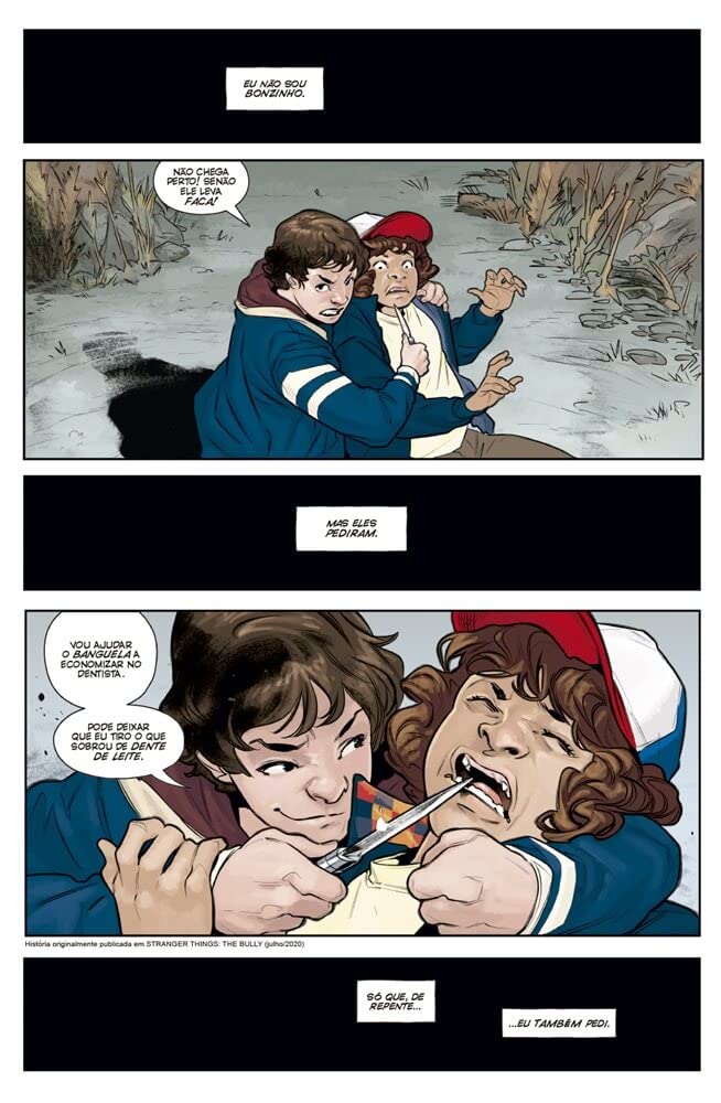Troy vem tendo pesadelos envolvendo Onze desde que a menina o envergonhou na frente de toda a escola e quebrou seu braço na primeira temporada. Sem ter como revidar e sofrendo de ansiedade, o garoto agora está determinado a provar que o que aconteceu entre Onze e ele foi causado por algum tipo de truque. Mas isso só dura até que ele e James conheçam os democães! Escrito pelo respeitadíssimo Greg Pak (Incrível Hulk, Star Wars) e desenhado pela talentosa Valeria Favoccia (Doctor Who, Assassins Creed)!