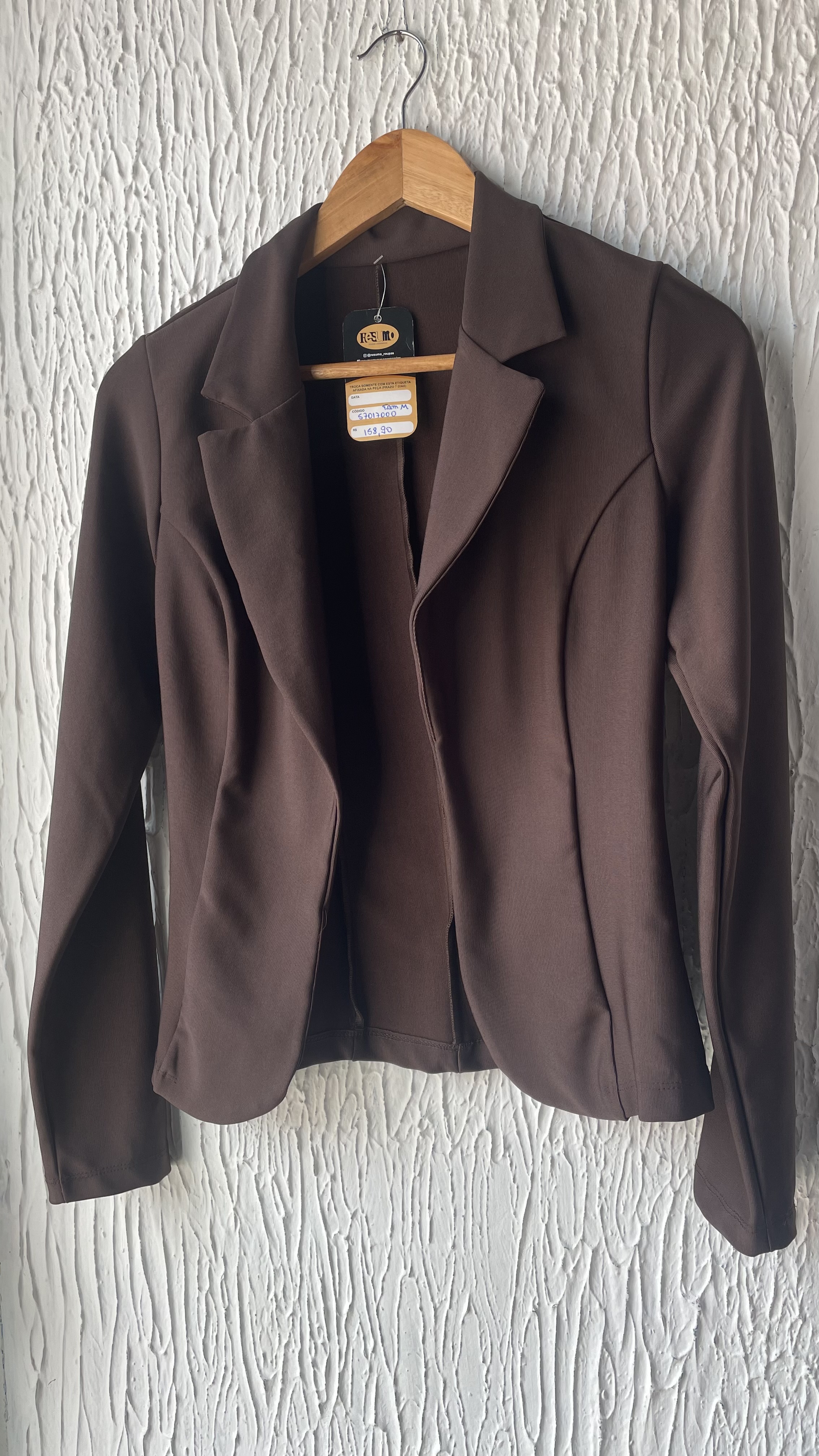 Blazer em malha montaria sem forro e fechamento modelo slim