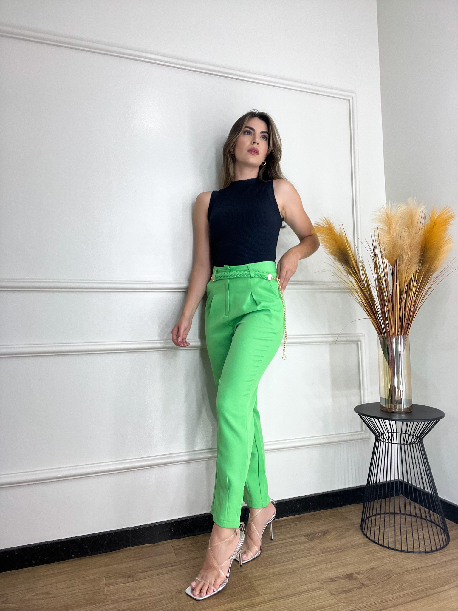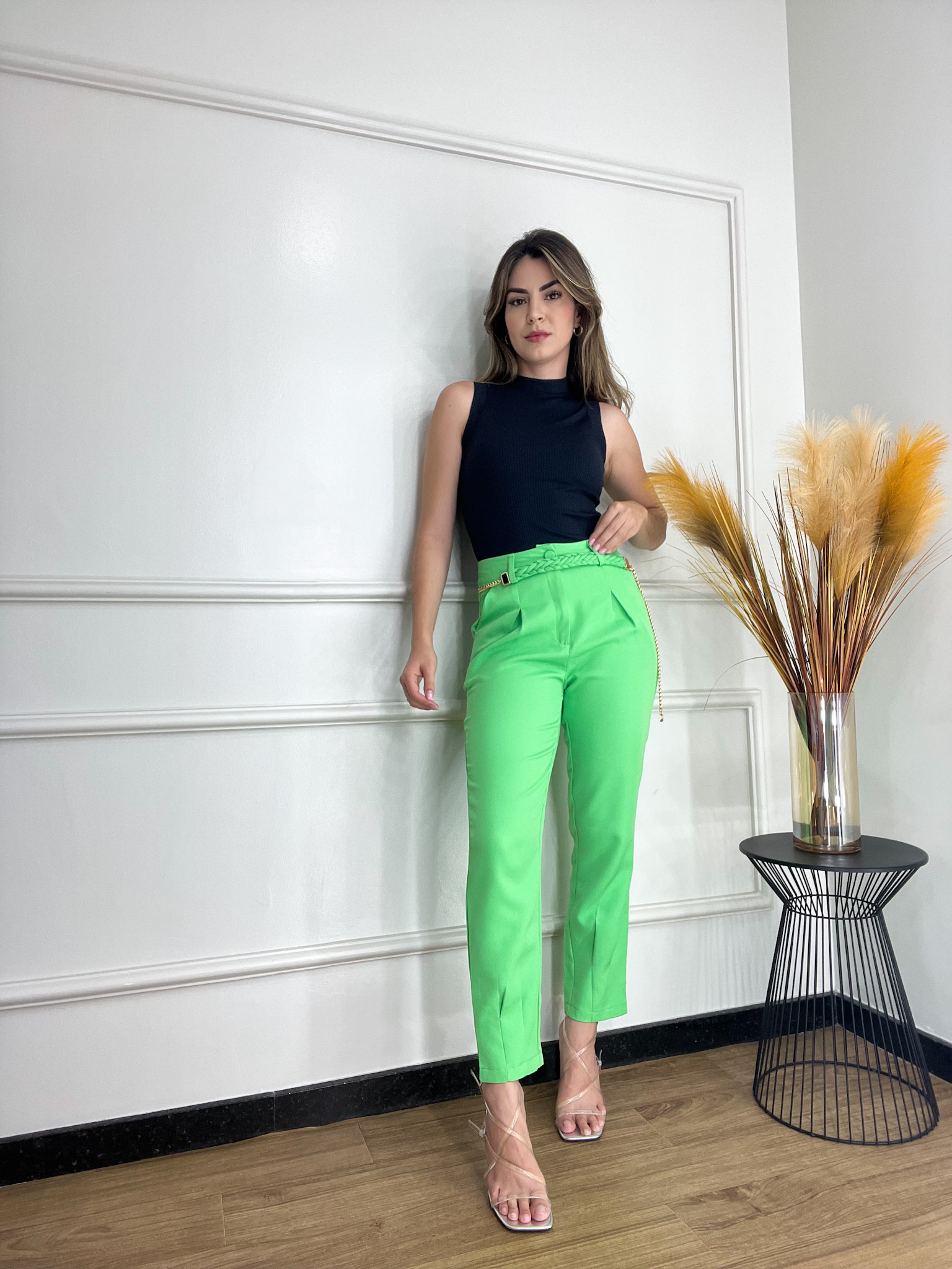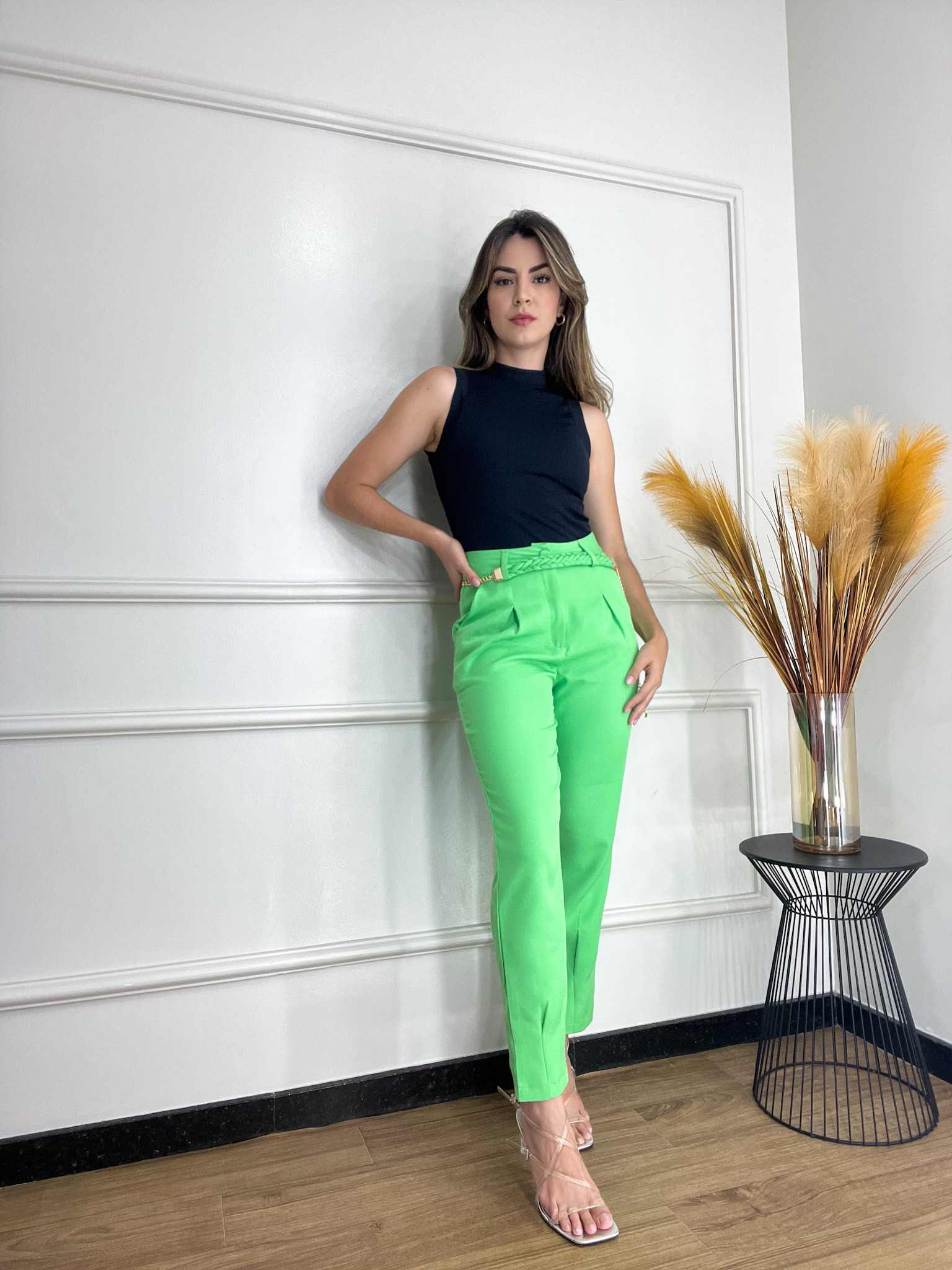 A calça de alfaiataria da marca My Crush une elegância e modernidade, sendo ideal para compor looks sofisticados. Confeccionada em tecido de alta qualidade, possui pences que destacam a silhueta, fechamento por zíper e botão encapado no mesmo tecido, além de bolsos frontais para maior praticidade. O detalhe na barra adiciona um toque diferenciado ao modelo. Disponível em um vibrante tom de verde, é uma peça única e exclusiva.
