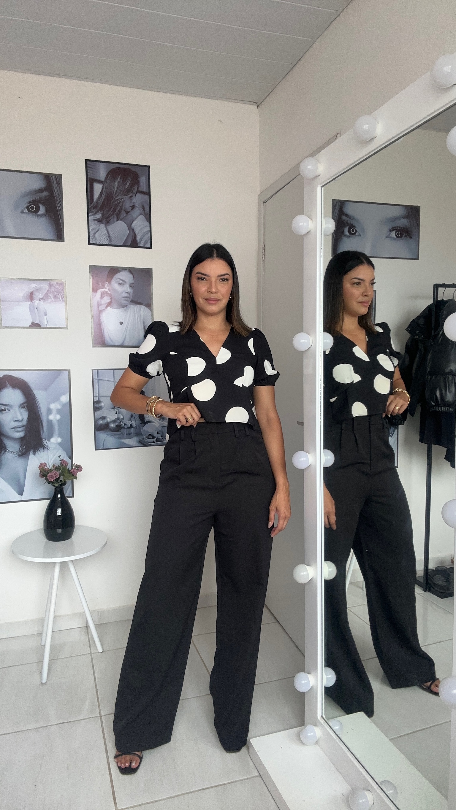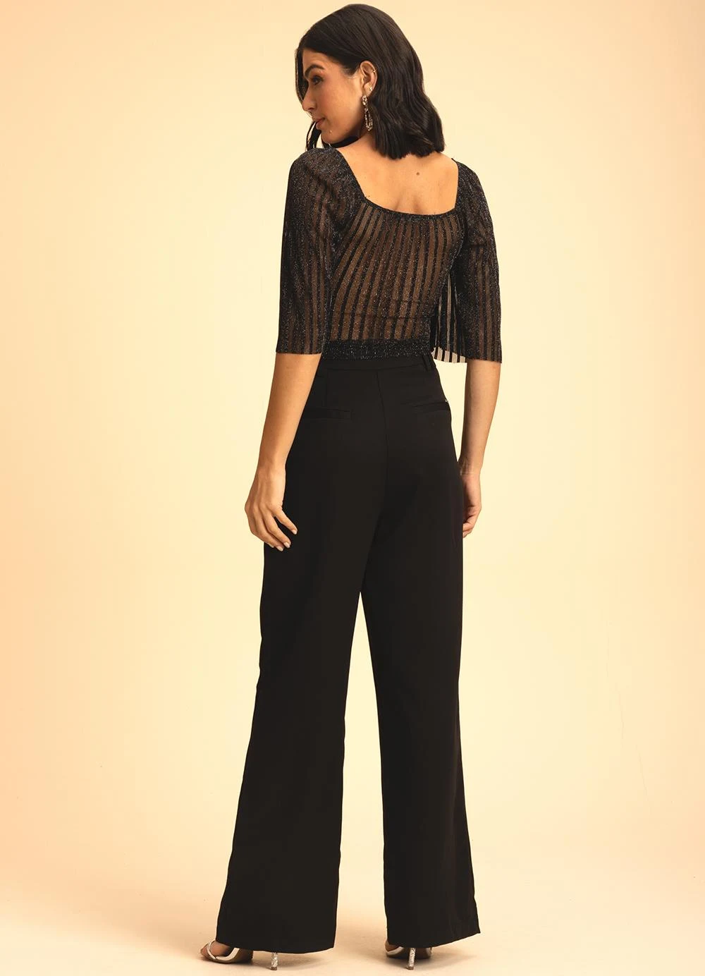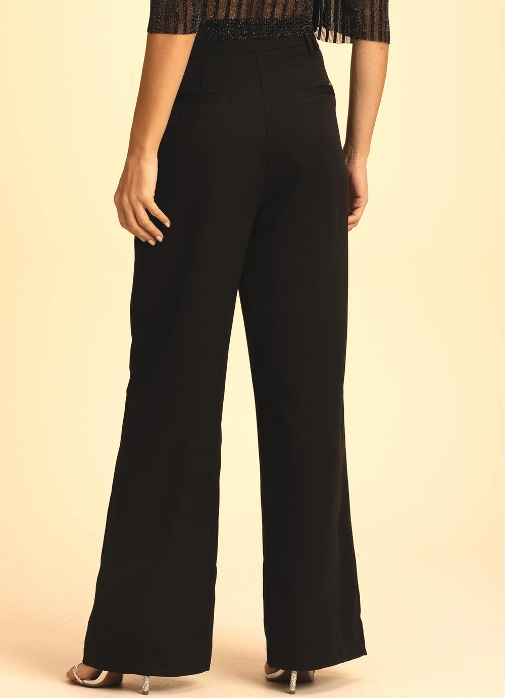 Modelagem: Ampla Modelo: Alfaiataria Cintura: alta Cuidados para conservação do produto: Lavagem A Mao - Não Alvejar - Não Secar Em Tambor - Secagem Em Varal A Sombra - Não Passar - Não Limpar A Seco - Limpeza A Úmido Profissional Processo Normal Fechamento: Botão e Zíper Tecido: Poliéster Composição: 97% Poliéster 3% Elastano