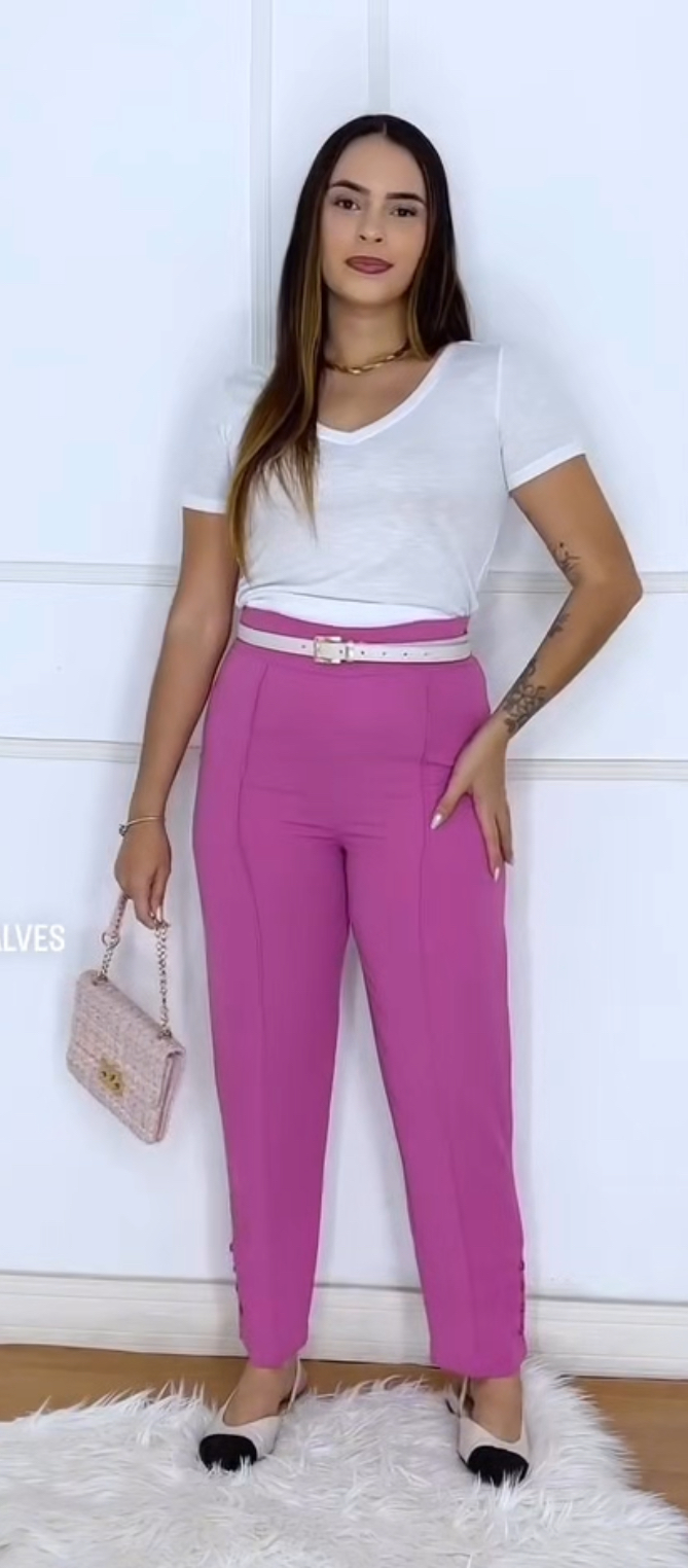 Composição: • 100% Poliéster Descrição: A Calça em Crepe com Botões na Barra da marca M Bella é uma peça sofisticada que combina elegância e conforto. Feita de 100% poliéster, o tecido crepe mais grosso garante um caimento perfeito e não é transparente, proporcionando segurança e conforto. A nervura frontal e o detalhe em viés adicionam um toque de refinamento ao design. O cós largo sem elástico oferece um ajuste confortável e elegante, enquanto o fechamento com zíper invisível na lateral mantém a estética limpa e sofisticada. Os quatro botões decorativos na barra adicionam um detalhe único e estiloso, tornando esta calça uma escolha versátil para diversas ocasiões.