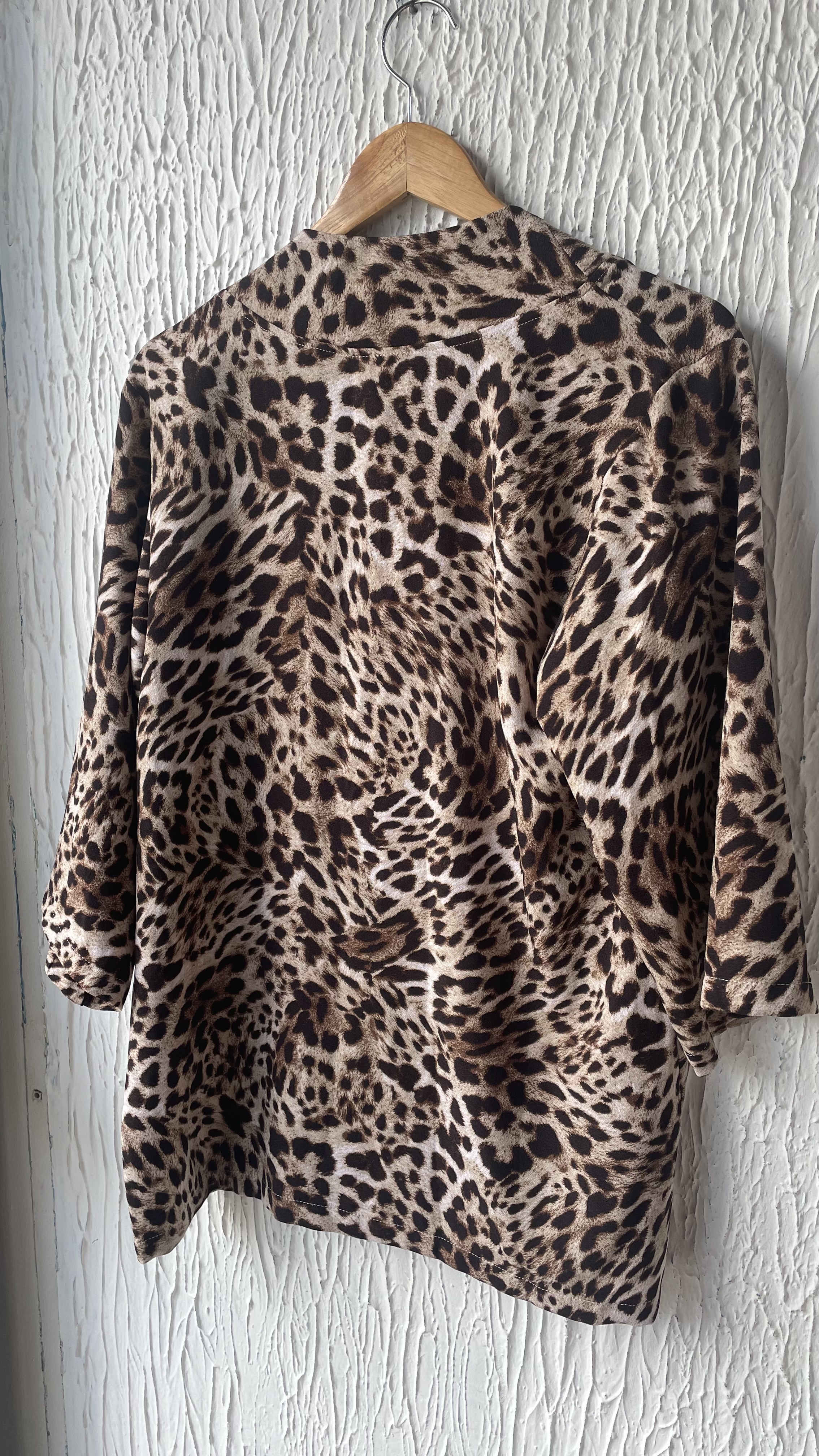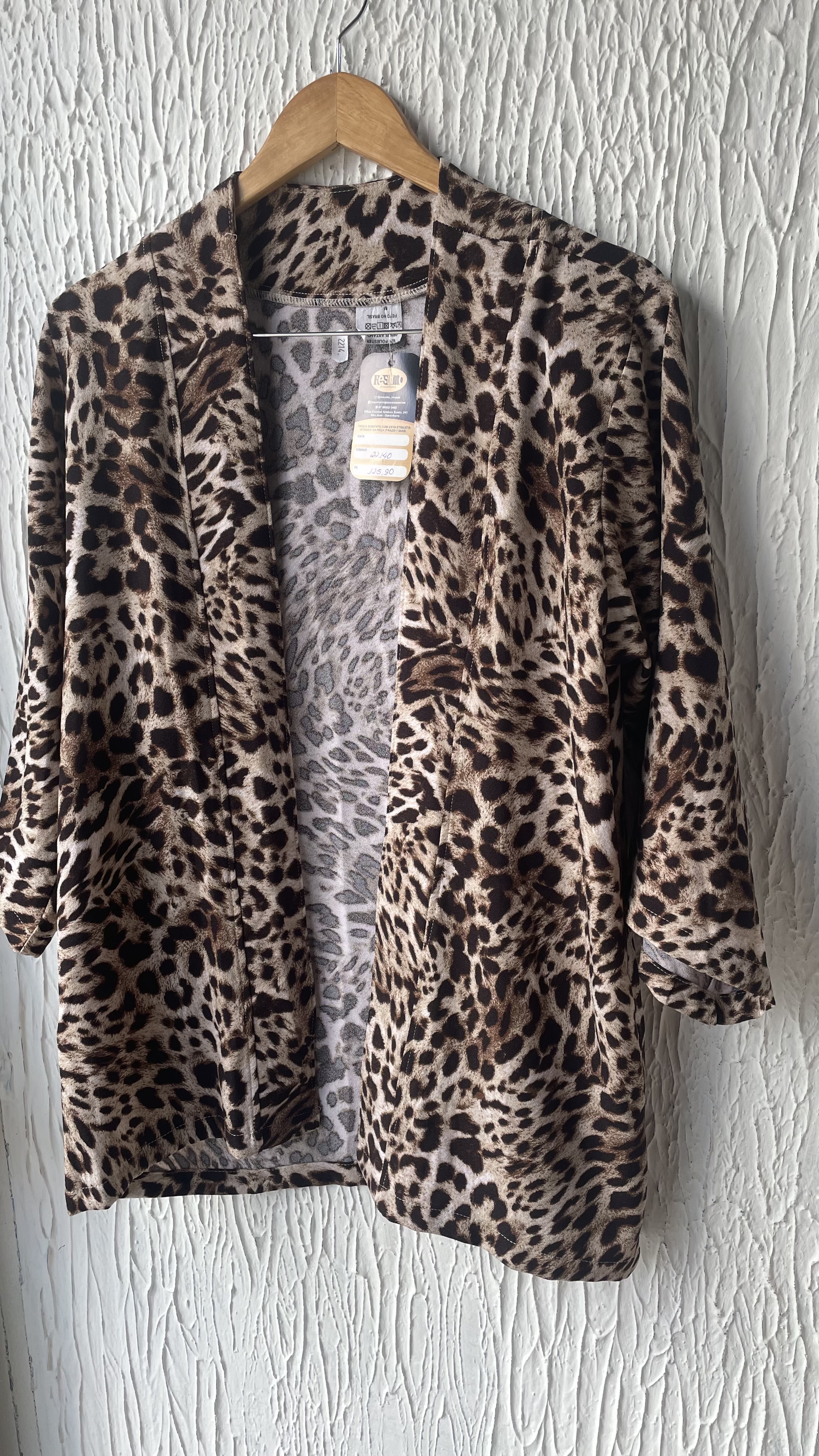 Cardiga sem botões, Manga 3/4 ampla. Veste do tamanho 40 ao 46