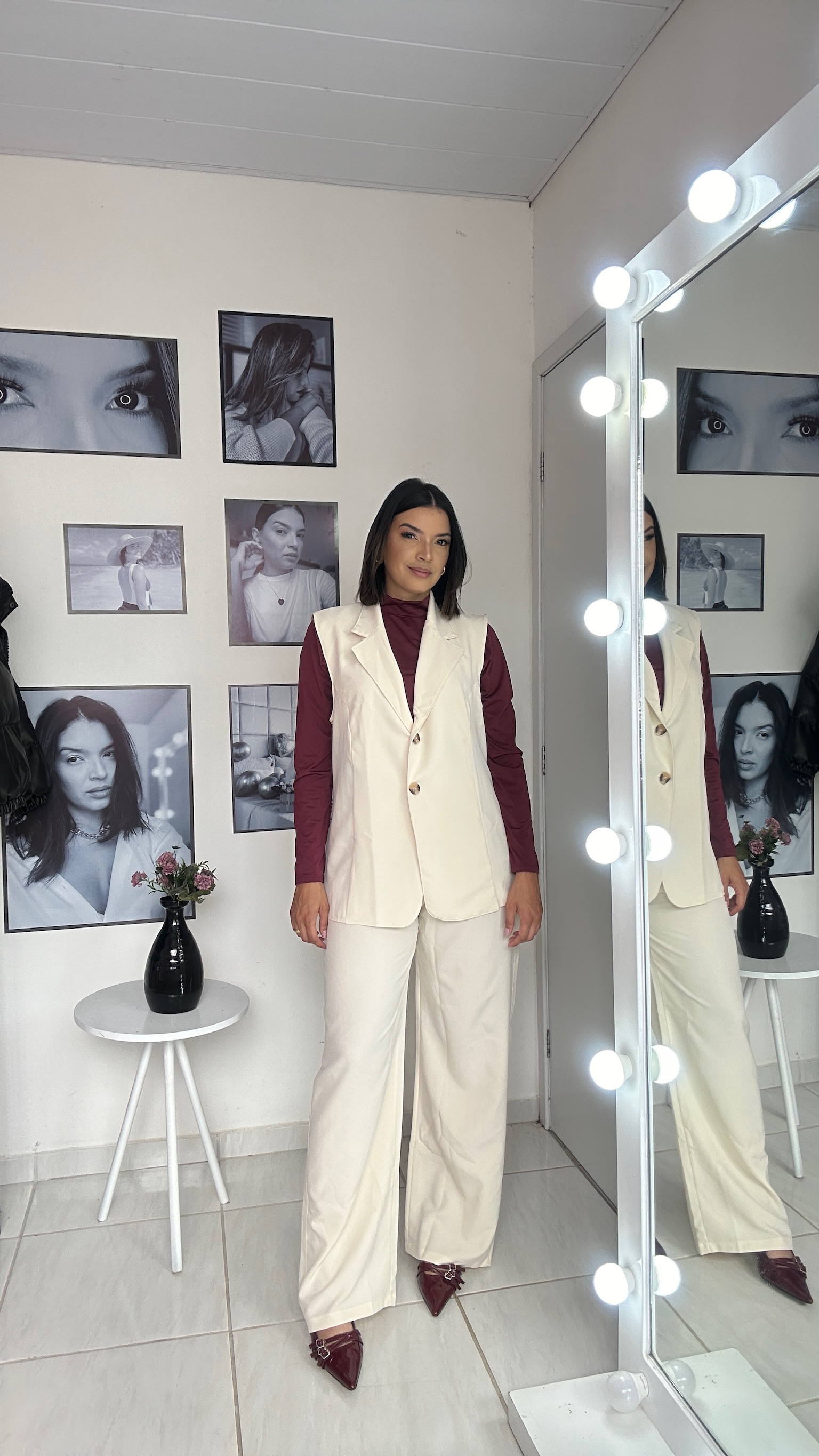 Em crepe creponado, o colete da Dolcetrama é uma peça leve e sofisticada, com fechamento por botões e lapela que adiciona um toque de elegância ao look. Não é forrado, o que o torna ideal para composições em dias mais quentes. Disponível em duas cores neutras que combinam com tudo. Truque de estilo: Use com calça de alfaiataria para um visual sofisticado ou combine com jeans para um look casual e moderno. Para quem deseja compor um conjunto, confira também a Calça Crepe Dolcetrama Ref 104498 e tenha um visual completo.