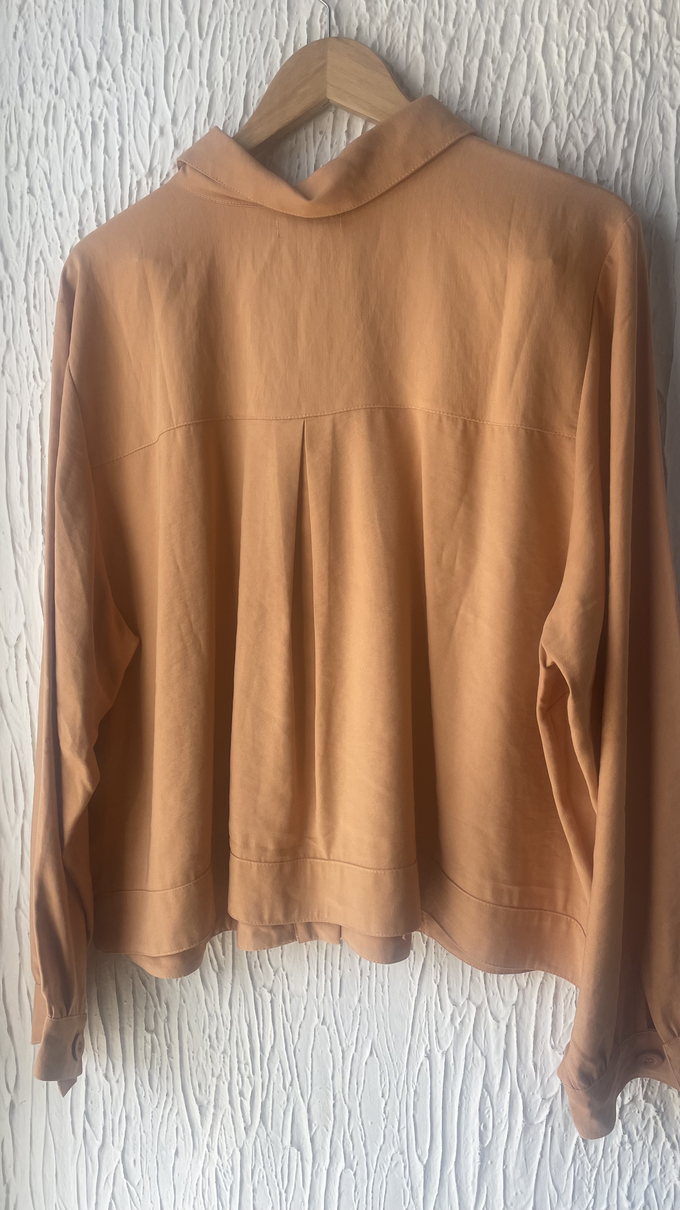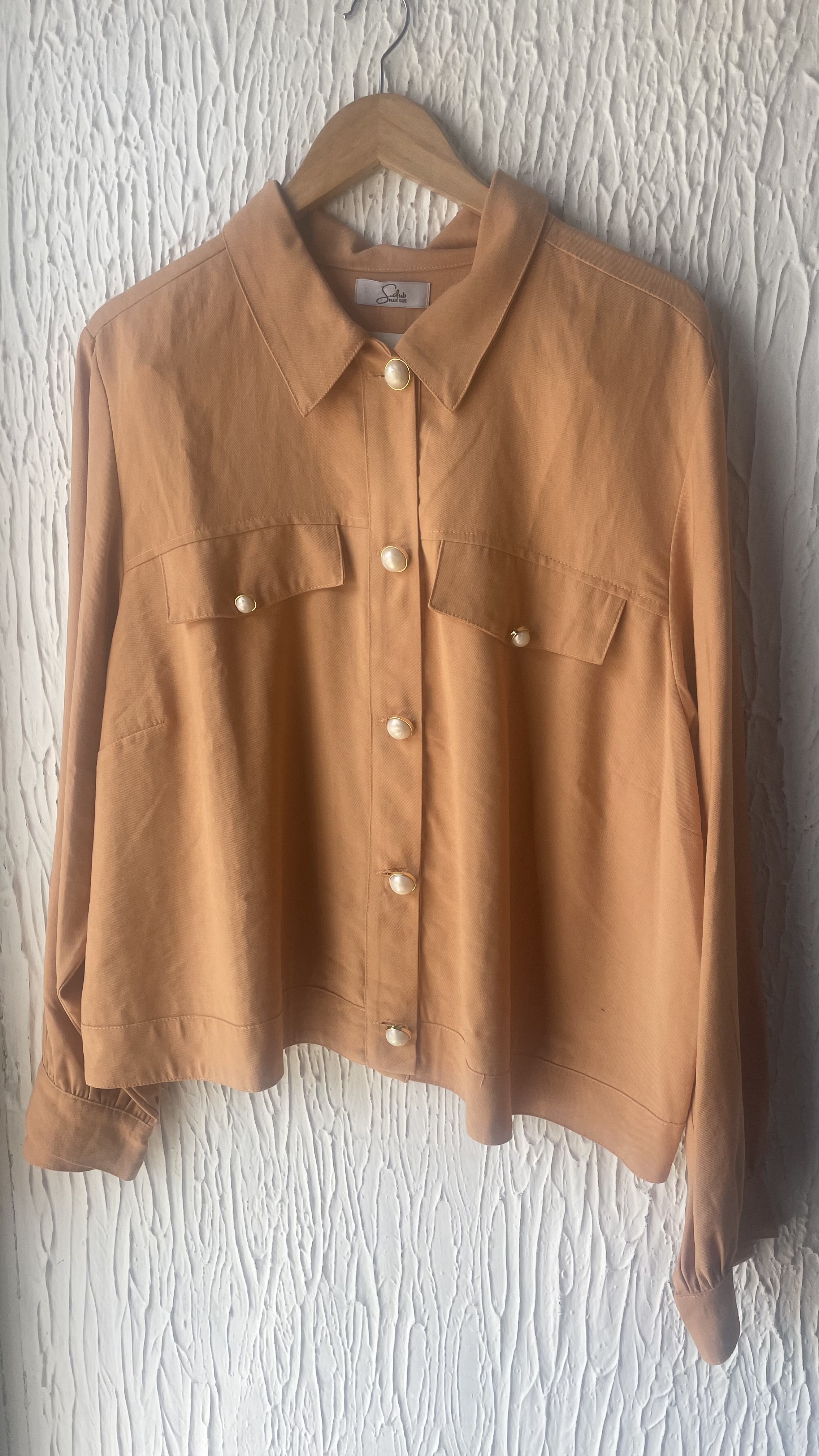 Jaqueta em Lionel fechamento com botões e mangas amplas.