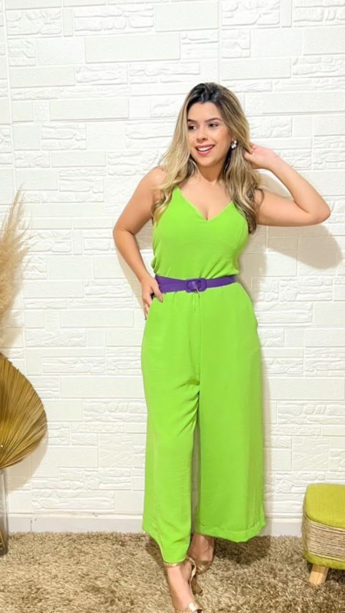 é aconfeccionado em crepe de alta qualidade, proporcionando leveza e conforto. Este modelo pantacourt, com pernas amplas no estilo pantalona, oferece um caimento sofisticado e contemporâneo. Ele conta com bojo interno para sustentação e está completamente forrado, garantindo que a peça não seja transparente. A amarração nas costas adiciona um toque delicado e moderno ao look, enquanto o tecido maleável acomoda tamanhos que vão do 38 ao 42 com muito conforto. Composição: Crepe premium, forrado e com bojo.
