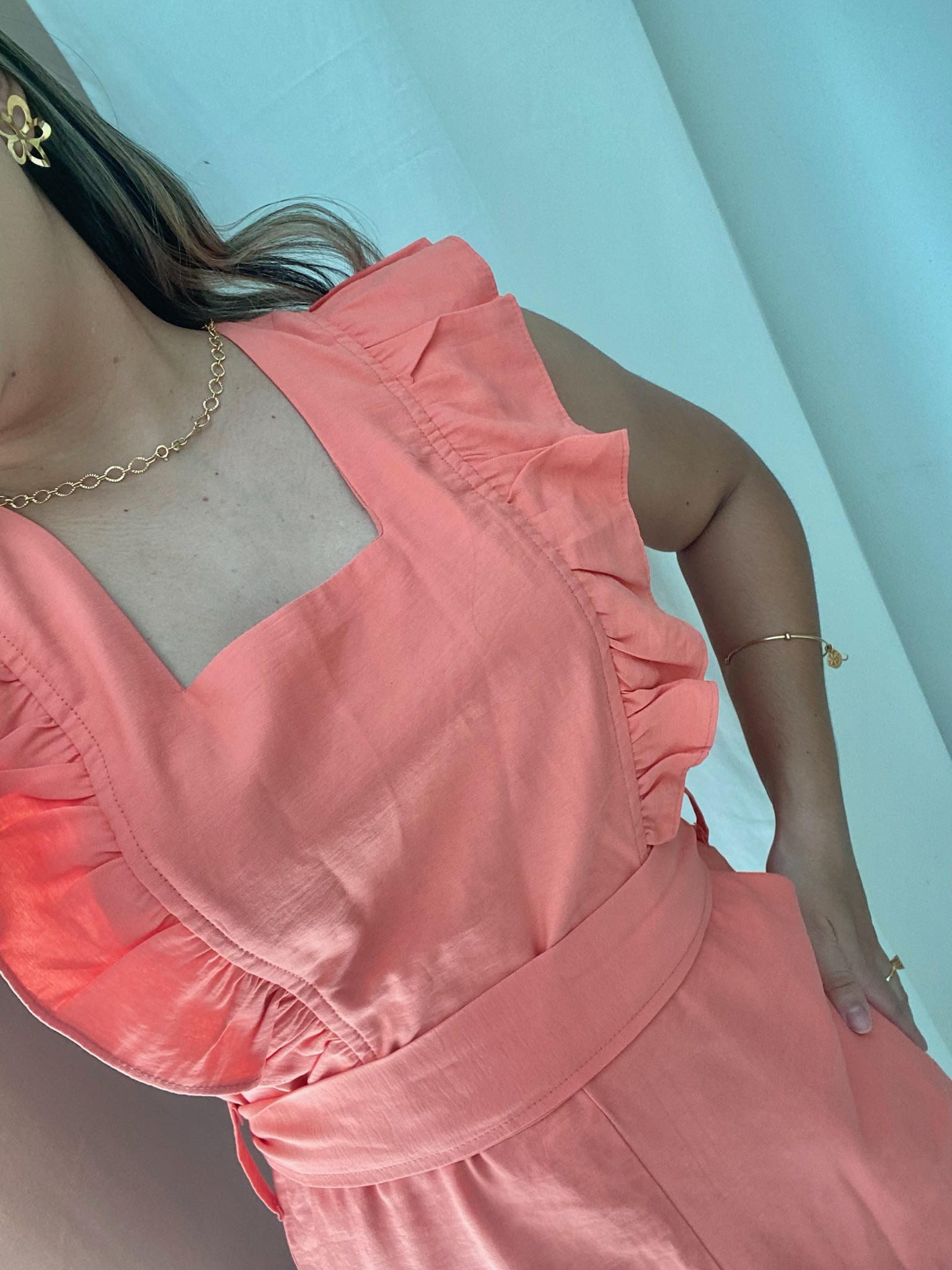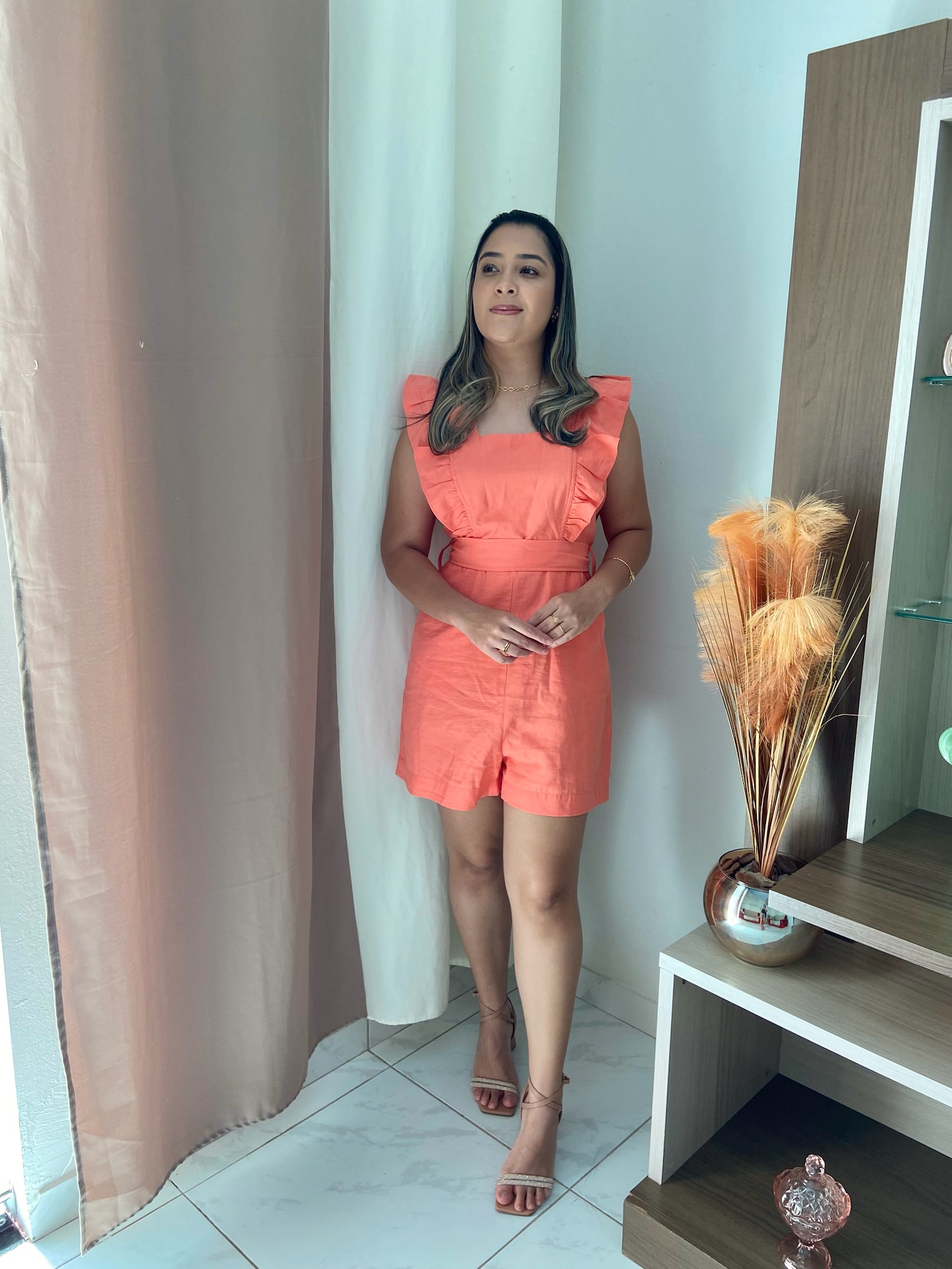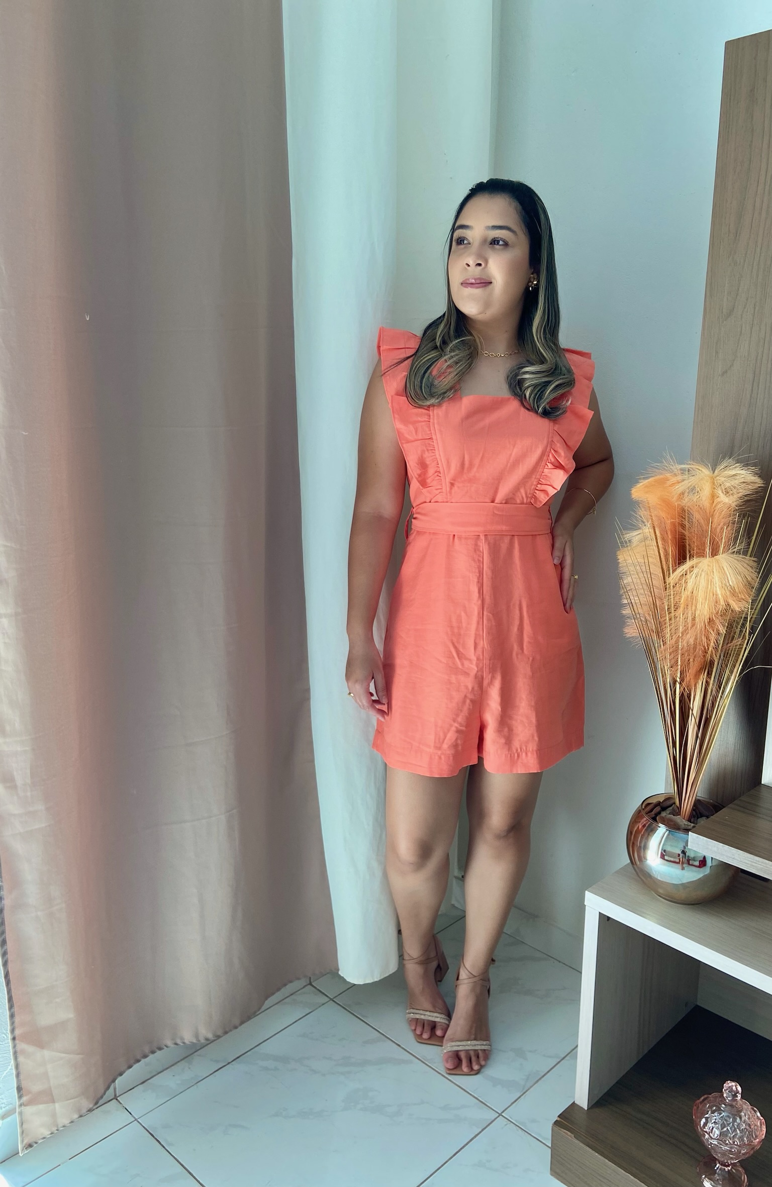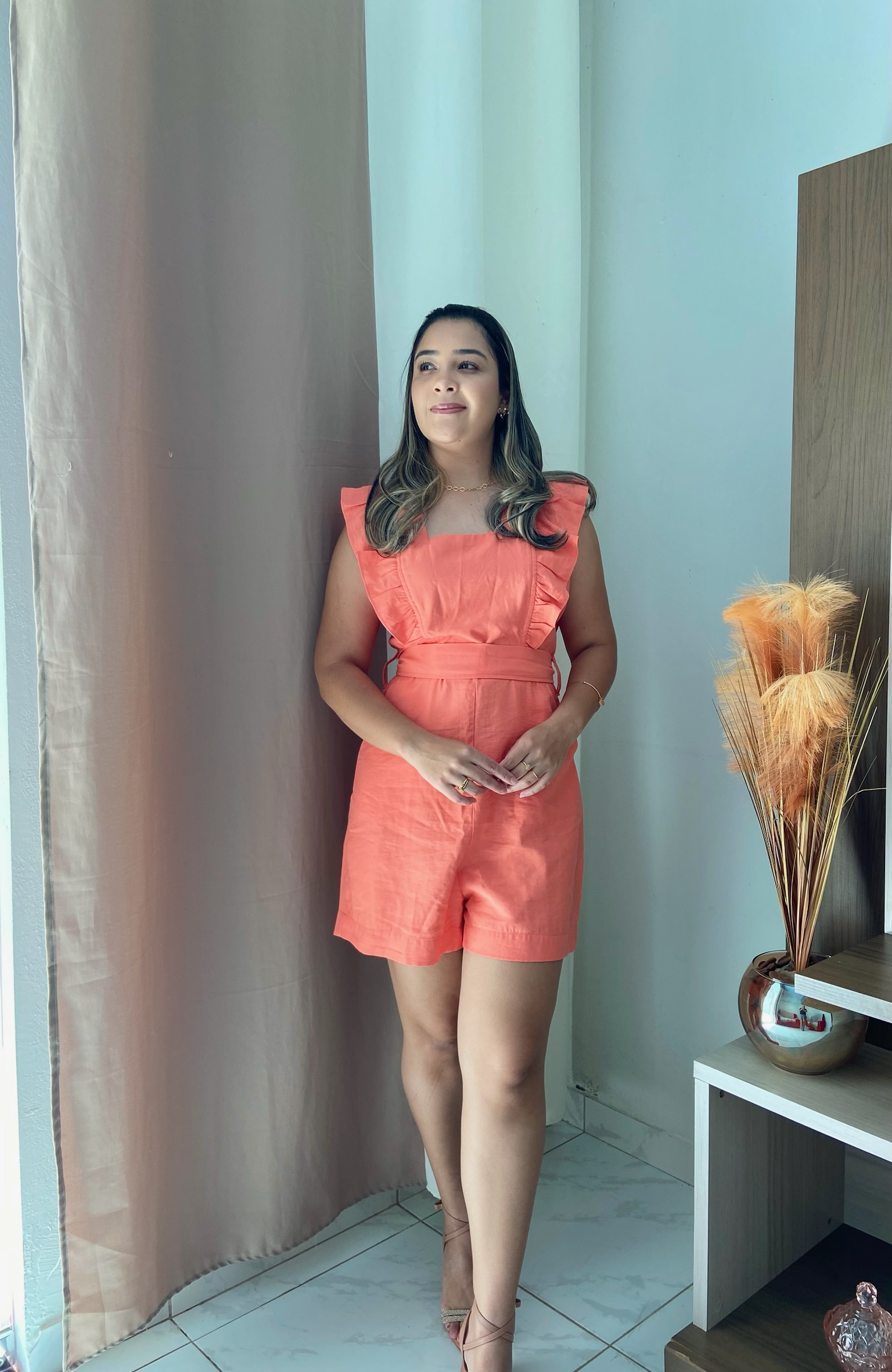 Descrição: Macacão moderno e delicado, confeccionado em tecido liossel, conhecido por sua durabilidade e leveza. • Detalhes: Babado frontal charmoso, decote quadrado e faixa para amarração no próprio tecido, conferindo elegância ao modelo. • Fechamento com zíper na parte traseira para um ajuste perfeito. Uma peça ideal para compor looks frescos e sofisticados. Sugestão de estilo: Combine com sandálias de salto ou rasteiras e acessórios delicados para um visual elegante e versátil, ideal para eventos diurnos ou ocasiões especiais.