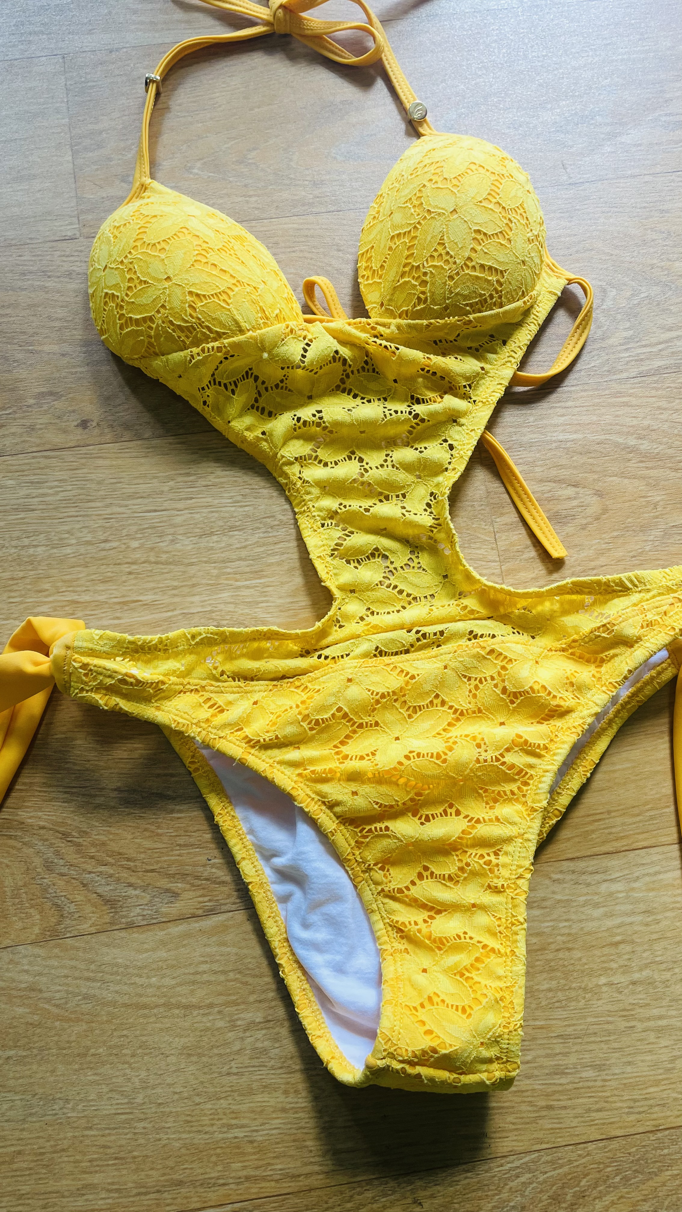 💛 Todo em renda, com modelagem sofisticada e sensual, perfeito para quem busca elegância e conforto. 🔹 Tecido: 85% poliamida, 15% elastano 🔹 Renda: 86,38% poliamida, 13,62% elastano 🔹 Bojo: 100% poliéster 🔹 Tamanho: P 🔹 Detalhes: Alças ajustáveis, acabamento rendado e bojo estruturado 🔥 Destaque-se na praia ou piscina com esse modelo exclusivo!