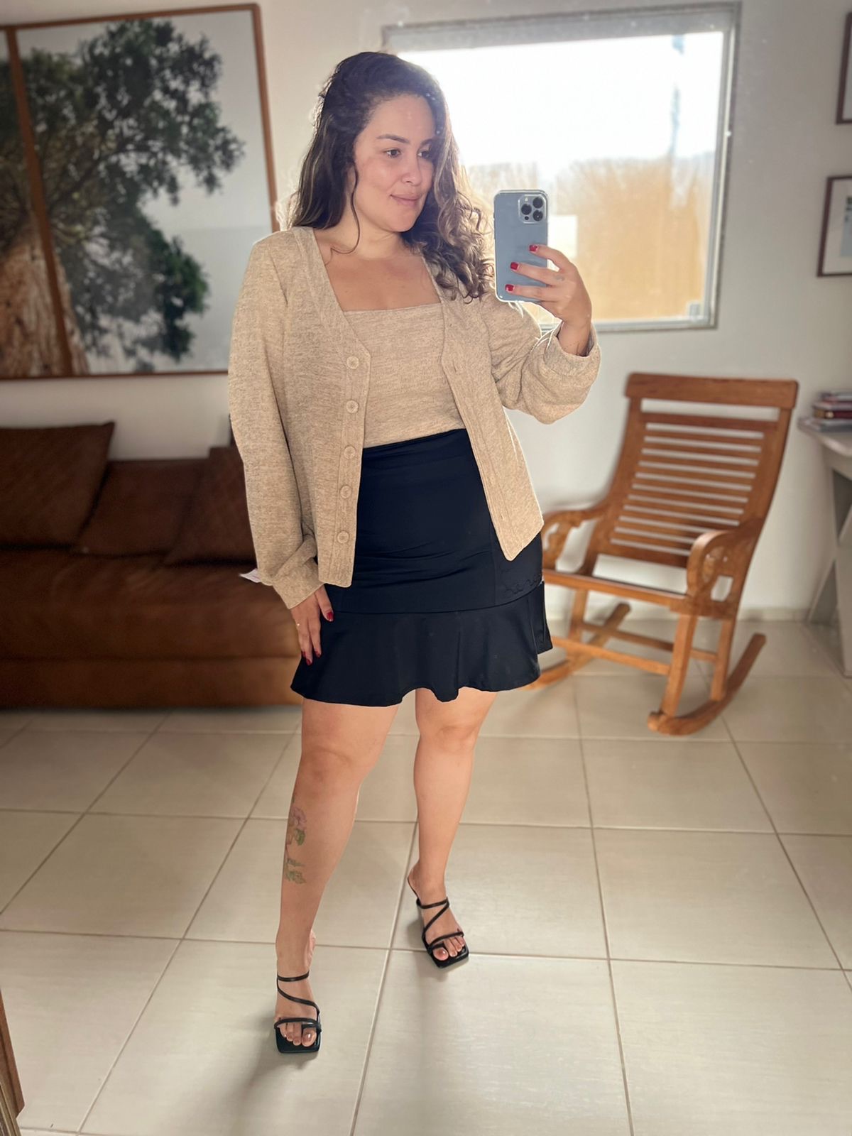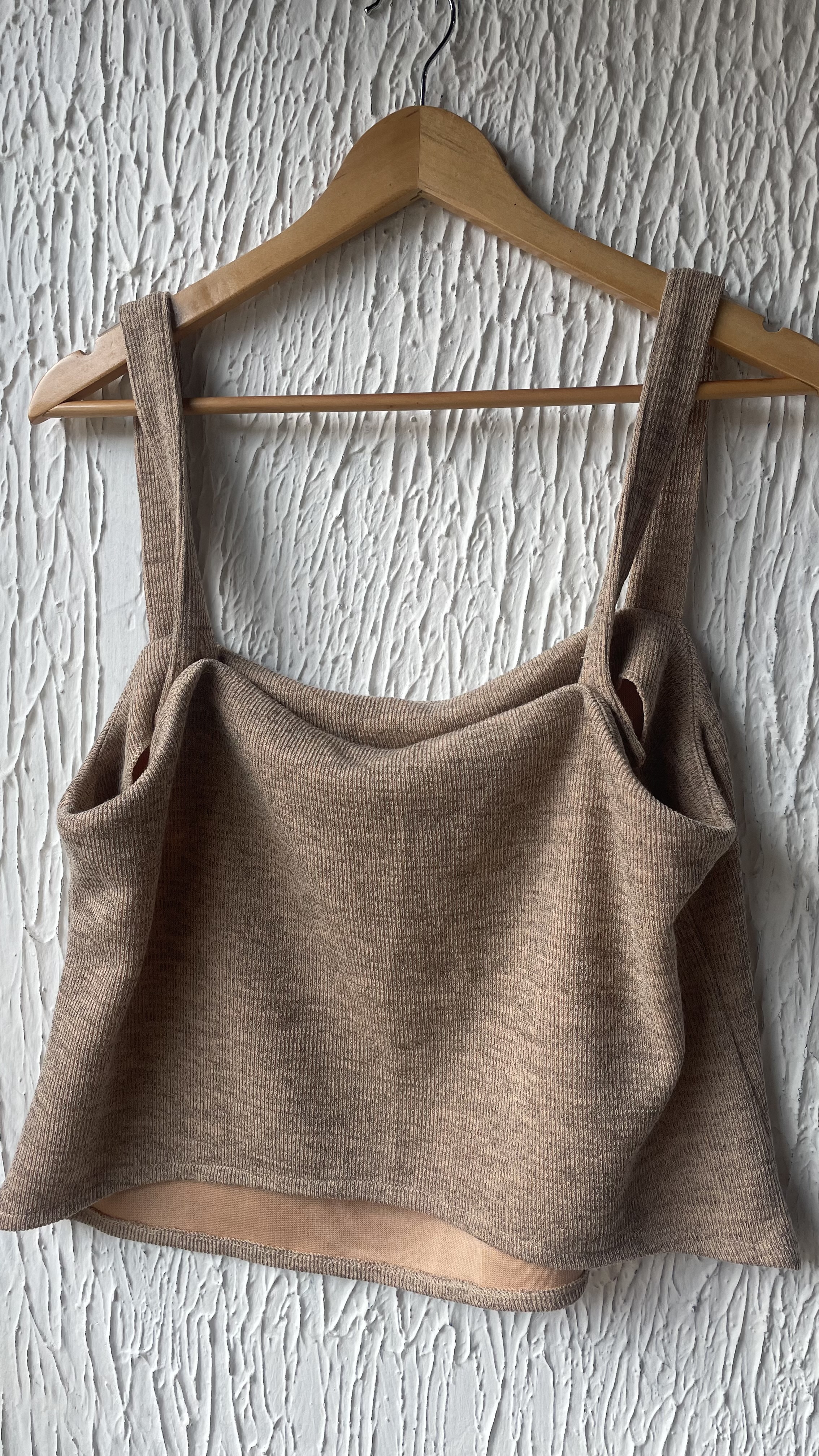 Top Chile em tricot, alças com fechamento em botões e você pode usar junto com o cardigan que tem no mesmo tecido.