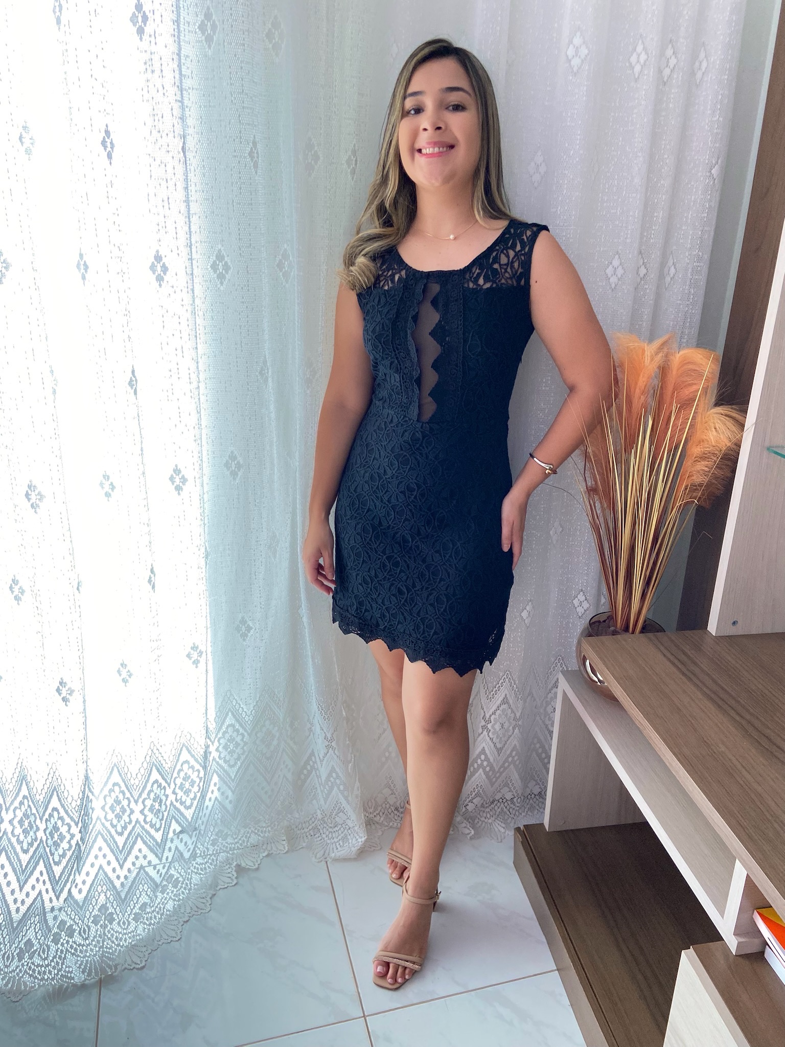 Vestido Preto em Renda com Tule Frontal Doce Trama REF: 10372