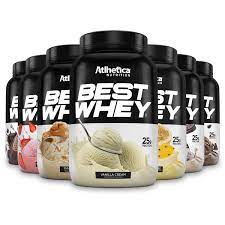 BEST WHEY - ATLHETICA NUTRITION: blend de proteínas wpc, wpi e wph, que oferece em cada porção 25 g de proteínas de alto valor biológico em deliciosos sabores e perfeita cremosidade. proteína ideal para aumento de massa muscular magra ou manutenção dela.ingredientes: formula best whey blend proteína concentrada do soro do leite (wpc), proteína isolada do soro do leite (wpi), proteína hidrolisada do soro do leite (wph), cacau em pó, espessante goma xantana, aromatizante idêntico ao natural e edulcorantes artificiais sucralose e acesulfame de potássio e natural reb a (glicosídeos de esteviol). alérgicos: contém derivados do leite e da soja. não contém glúten.ingrediente usado no processo de instantaneização da proteína do soro do leite.