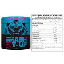Smash T-Up é um pré-treino que reúne ingredientes estimulantes clinicamente pesquisados e que foi desenvolvido para proporcionar o máximo de desempenho durante os treinos, bem como auxiliar no ganho de massa magra como a cafeína, taurina, arginina, beta-alanina, creatina, aspartato,coenzima Q10 e L-carnitina. Os estimulantes presentes na formulação de Smash T-Up podem ainda auxiliar no aumento dos níveis de testosterona de forma natural, além de aumentar a energia, foco e concentração. DIFERENCIAIS E BENEFÍCIOS - Com beta-alanina - Com cafeína, taurina e arginina - Com creatina - Força e resistência aos treinos - Efeito PUMP (aumento no tamanho dos músculos) - Aumento da massa muscular - Aumento do foco e concentração SUGESTÃO DE USO Diluir 10g (2 dosadores) em 200 ml de água gelada, guardar em recipiente bem fechado e consumir 30ml a cada 2 horas ou conforme orientação profissional. APRESENTAÇÃO Pote com 300G I 30 doses SABORES -ARTIC ICE -CRAZY LEMON -PARADISE PUNCH INGREDIENTES Crazy Lemon: creatina monohidratada, beta-alanina, cloridrato de L-arginina, amido de milho ceroso (Waxy maize), isomaltulose, ácido L-aspártico, taurina, cafeína, tartarato de L-carnitina, agente de massa glicerol, acidulante ácido cítrico, antiumectante dióxido de silício e fosfato tricálcico, aromatizante idêntico ao natural e edulcorante sucralose e acessulfame de potássio. NÃO CONTÉM GLÚTEN. ALÉRGICOS: PODE CONTER AMENDOIM E DERIVADOS DE SOJA, LEITE E OVO. Artic Ice: creatina monohidratada, isomaltulose(palatinose), beta alanina, L-arginina, taurina, ácido aspártico, cafeína anidra, coenzima Q10, L-carnitina, emulsificante glicerol, aroma idêntico ao natural e edulcorante sucralose. NÃO CONTÉM GLÚTEN. ALÉRGICOS: PODE CONTER AMENDOIM E DERIVADOS DE SOJA, LEITE E OVO. Paradise Punch:creatina monohidratada, beta-alanina, cloridrato de L-arginina, amido de milho ceroso (Waxy maize), isomaltulose, ácido L-aspártico, taurina, cafeína, coenzima Q10, tartarato de L-carnitina, agente de massa glicerol, acidulante ácido cítrico, antiumectante dióxido de silício e fosfato tricálcico, aromatizante idêntico ao natural e edulcorante sucralose e acessulfame de potássio. NÃO CONTÉM GLÚTEN. ALÉRGICOS: PODE CONTER AMENDOIM E DERIVADOS DE SOJA, LEITE E OVO. RECOMENDAÇÃO Manter a embalagem fechada em local seco, longe do calor ou da luz direta. Após aberto, consumir o produto dentro do prazo informado na embalagem. Este produto não é um medicamento. Mantenha fora do alcance de crianças. Não exceder a recomendação diária de consumo indicada na embalagem. Este produto não deve ser consumido por gestantes, lactantes e crianças. Produto indicado para maiores de 19 anos.