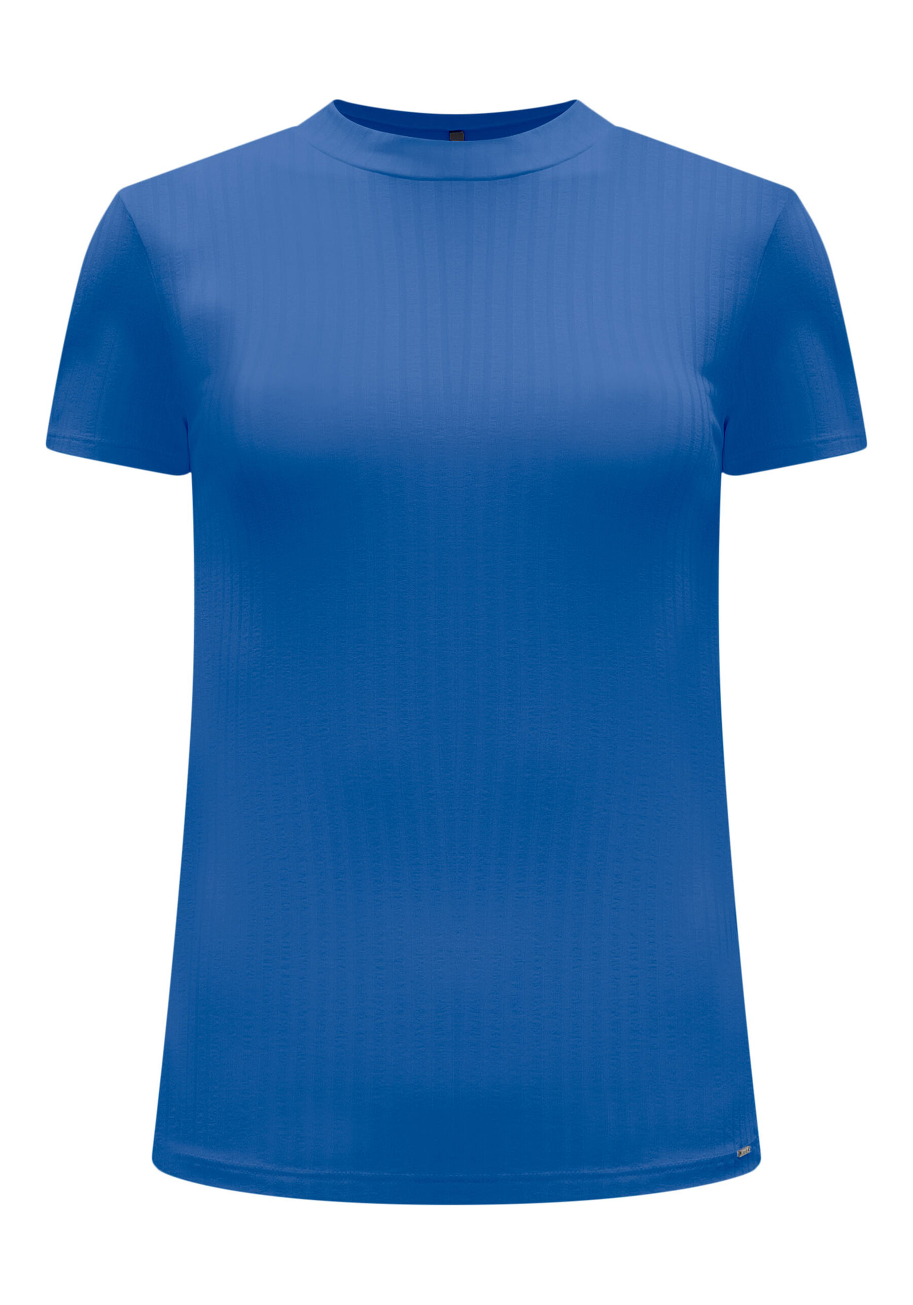 Blusa Básica Canelada De Mangas Curtas Com Gola