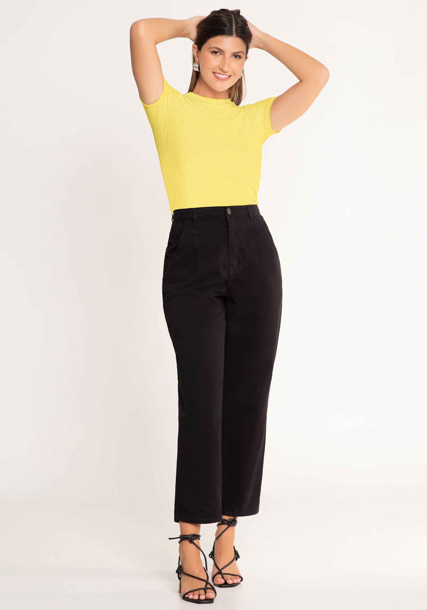Com textura canelada e comprimento cropped, esta blusa garante versatilidade para o closet. Sua malha leve oferece o equilíbrio ideal entre conforto e estilo. Combine com saias ou calças de cintura alta. - Feita com viscose responsável - Produção com menor impacto ambiental - Malha leve com elasticidade - Textura canelada - Gola redonda - Comprimento cropped - Mangas curtas Coleção Alto Verão 25