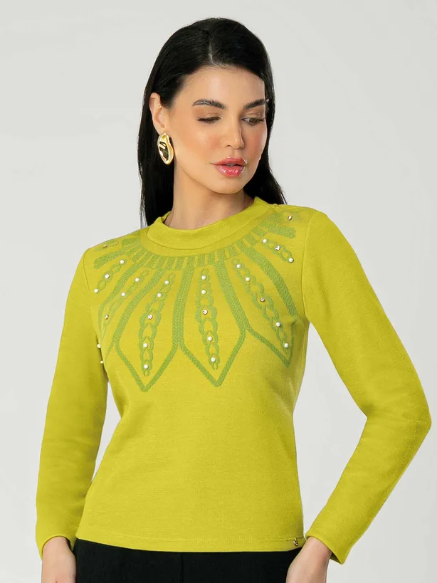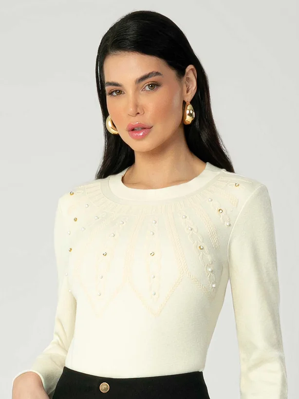 A Blusa feminina adulto de manga longa, confeccionada em tricô elementar, é uma peça única que se destaca pelos detalhes refinados. Apresentando bordado manual e estampa com relevo, essa blusa é um verdadeiro trabalho artístico. Os bordados adicionam um toque de delicadeza, enquanto a estampa em relevo proporciona textura e sofisticação. Ideal para mulheres que buscam uma peça exclusiva, essa blusa de tricô elementar é perfeita para elevar o visual com elegância e estilo