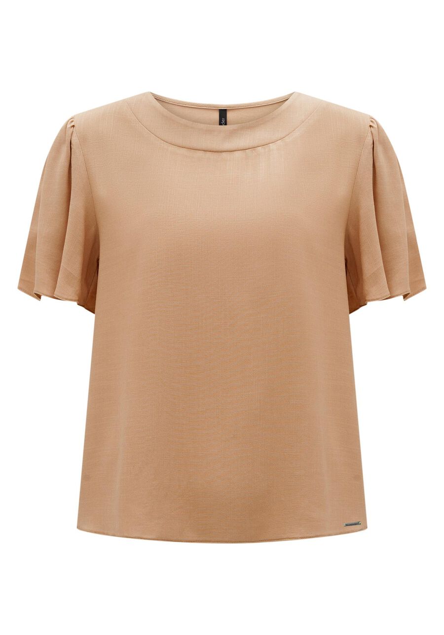Com caimento solto e decote redondo, esta blusa é perfeita para quem busca um look que vai do escritório a eventos informais. Suas mangas curtas e amplas garantem elegância e conforto em todas as ocasiões. - Feita com viscose responsável - Produção com menor impacto ambiental - Tecido plano com textura sofisticada - Mangas curtas e amplas - Decote redondo - Caimento solto Coleção Alto Verão 25