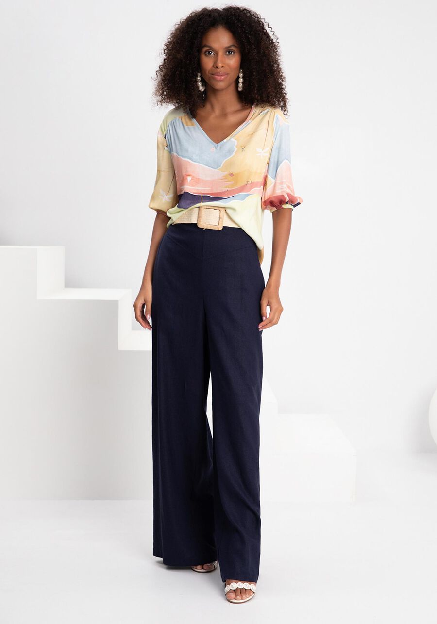 Com modelagem levemente mais comprida nas costas, esta blusa é a aposta certa para compor looks despojados. Combine com um cinto largo e calça wide leg para um visual equilibrado que vai do trabalho ao happy hour. - Feita com viscose responsável - Produção com menor impacto ambiental - Tecido plano e levemente encorpado - Modelagem mullet: mais comprida nas costas - Mangas médias com elástico - Decote em "V" Coleção Alto Verão 25