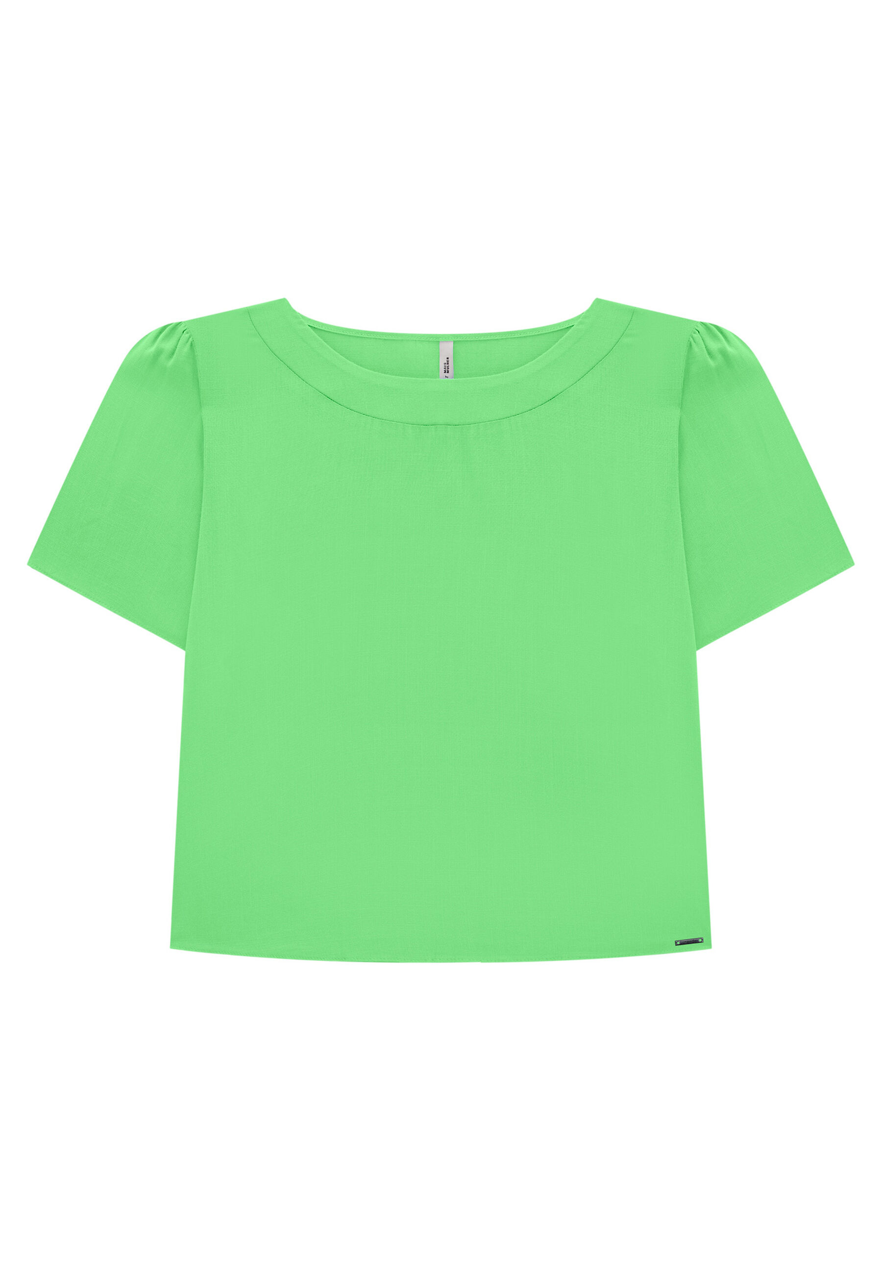 Blusa em viscose com textura que lembra o linho, trazendo sofisticação e caimento fluido. Minimalista, com detalhe de franzido nos ombros para um toque romântico. Combine com calça pantalona para um look elegante e descomplicado. - Confeccionado em Tecido Rayon New Slub: tecido plano de viscose com caimento fluido e leve efeito diferenciado na trama que lembra o Linho - Modelagem solta ao corpo - Mangas curtas amplas com detalhe franzido - Decote redondo - Viscose responsável: fibra têxtil feita a partir da celulose da madeira e seguindo padrões socioambientais em sua produção