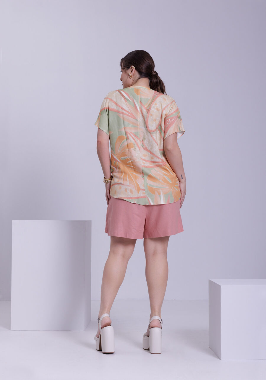 Blusa em viscose com caimento fluido e estampa moderna que traz um toque especial ao seu dia. Sofisticada e super versátil, essa peça é perfeita para combinar com uma calça wide leg para arrasar no look de trabalho ou com jeans para momentos mais descontraídos. Afinal, estilo e conforto andam juntos! - Confeccionada em Tecido Rayon Twill: viscose mais encorpada, com leve textura - Modelagem solta ao corpo - Modelagem inteira, sem cavas - Mangas curtas - Recorte V no decote